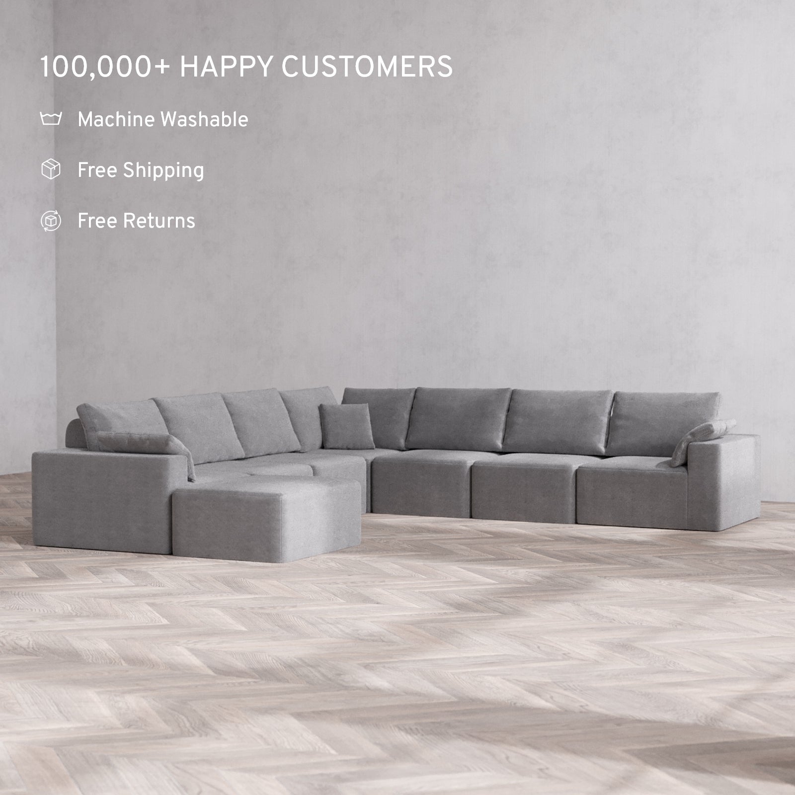 Modular: Flexible by design, each unit can be rearranged in seconds. Our patent-pending sofas are built to fit effortlessly into spaces of any size.
