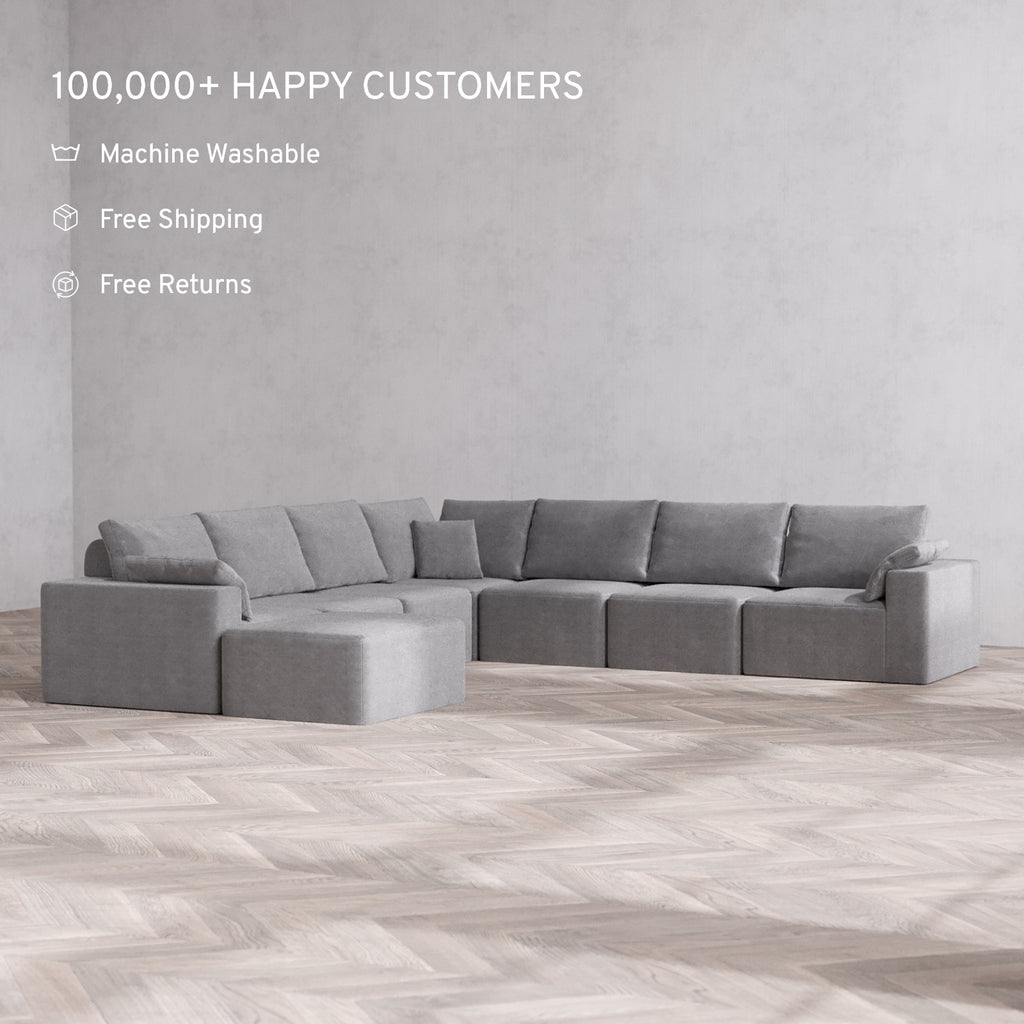 The Only Washable Cloud Sofa: With a waterproof frame and fabrics that resist pets, stains, and spills, this sofa is made to handle everyday messes. Our patent-pending covers are machine washable and fully interchangeable—buy extra sets to change up your look anytime.