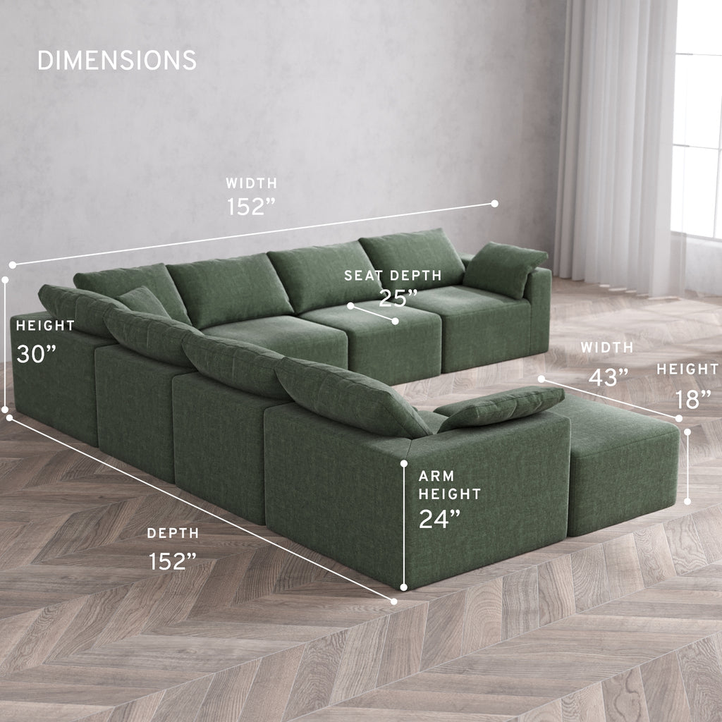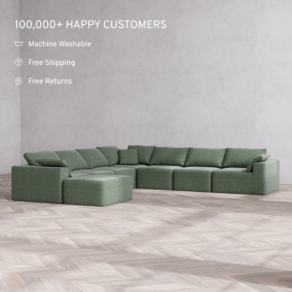 Modular Washable 8-Seater Corner Chaise Sectional Cloud Sofa | Heirloom Velvet in Sage