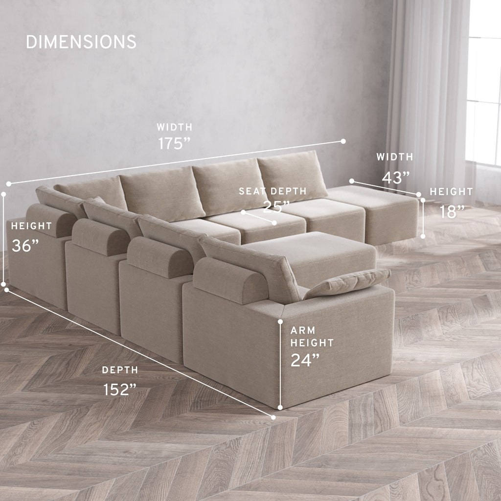 Machine Washable: Every piece of fabric—including the internal quilted duvet—is fully removable and machine washable. It’s the only Cloud-style sofa you can truly deep clean, effortlessly.