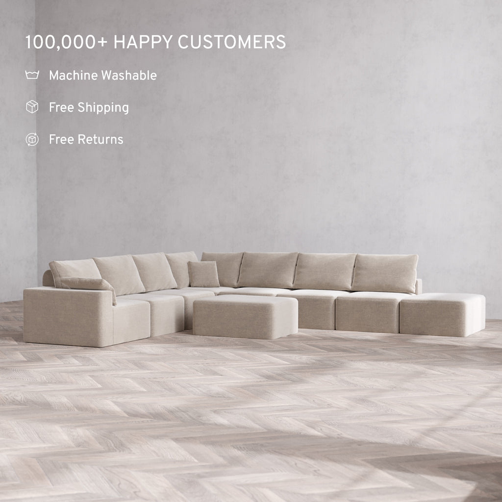 The Only Washable Cloud Sofa: With a waterproof frame and fabrics that resist pets, stains, and spills, this sofa is made to handle everyday messes. Our patent-pending covers are machine washable and fully interchangeable—buy extra sets to change up your look anytime.