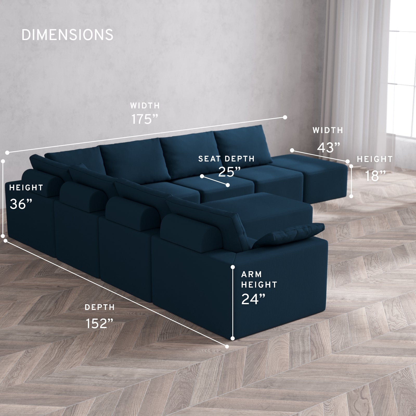 Modular Washable 8-Seater Open End Corner Sectional + Chaise Ottoman Cloud + Bolster Sofa | Left-Facing Arm | Arden Weave in Lazuli