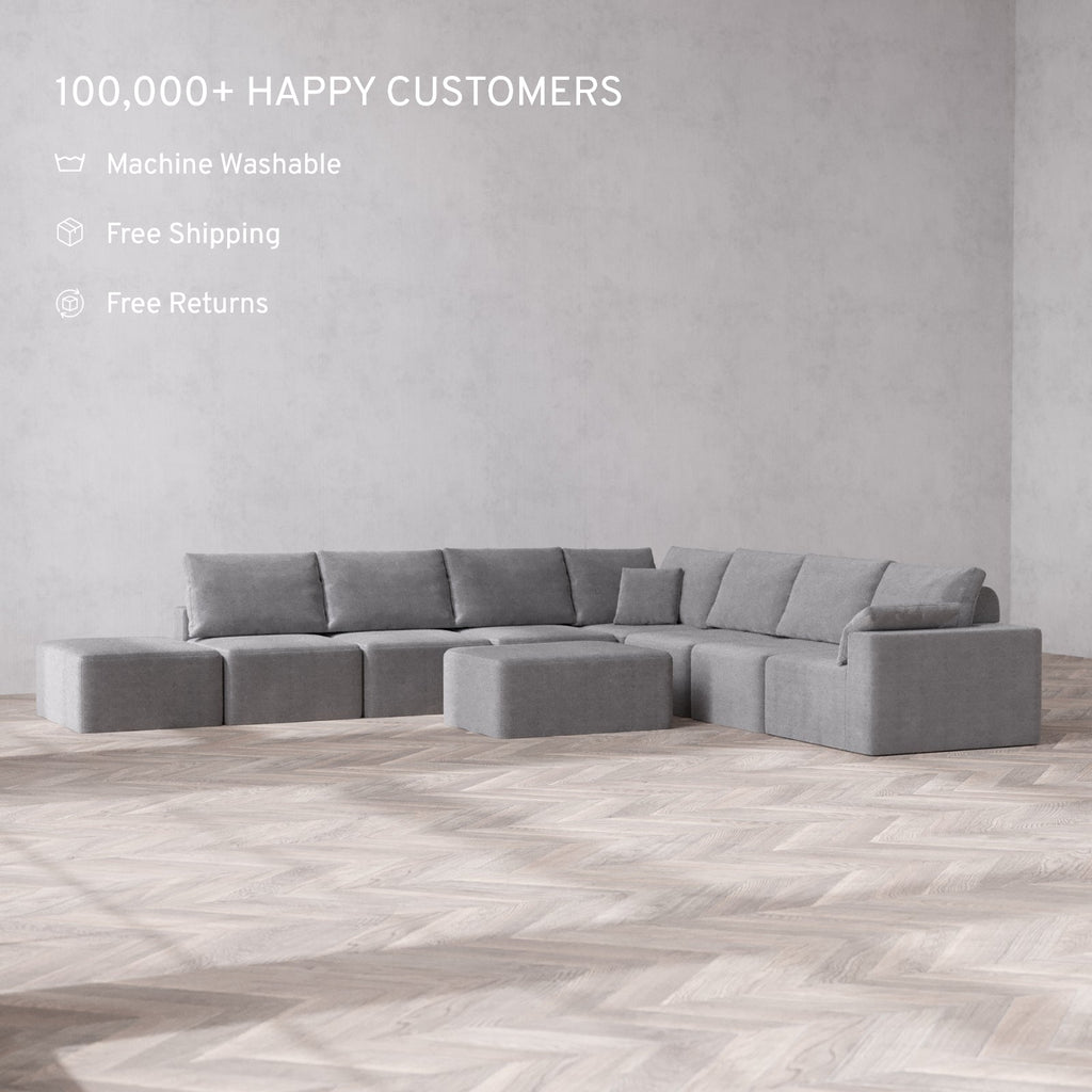 The Only Washable Cloud Sofa: With a waterproof frame and fabrics that resist pets, stains, and spills, this sofa is made to handle everyday messes. Our patent-pending covers are machine washable and fully interchangeable—buy extra sets to change up your look anytime.