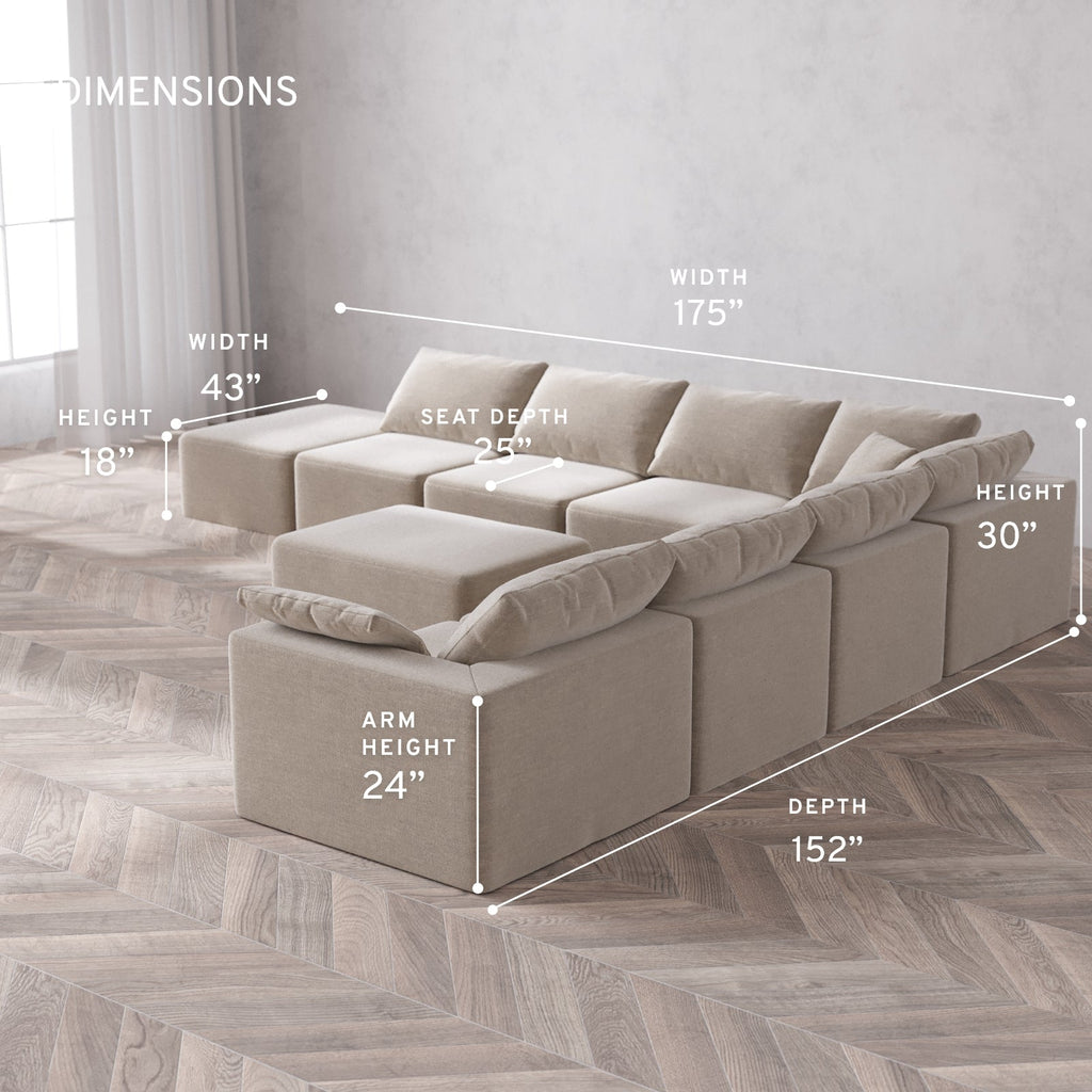 Machine Washable: Every piece of fabric—including the internal quilted duvet—is fully removable and machine washable. It’s the only Cloud-style sofa you can truly deep clean, effortlessly.