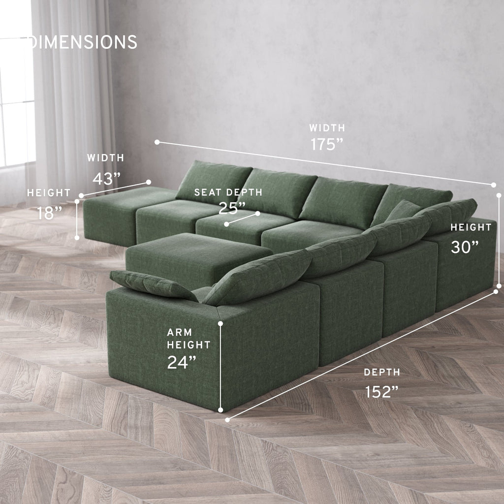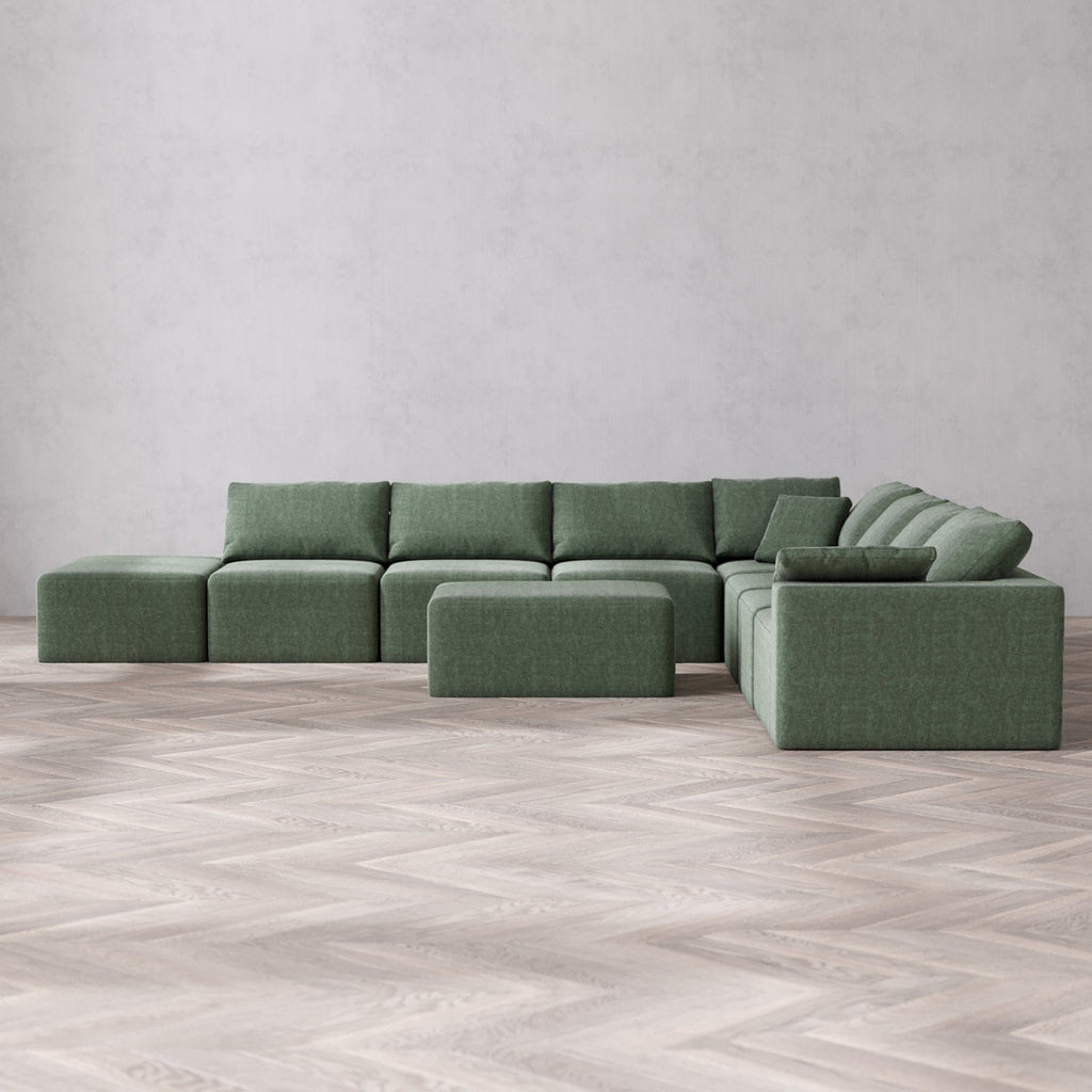 Modular Washable 8-Seater Open End Corner Sectional + Chaise Ottoman Cloud Sofa | Right-Facing Arm | Heirloom Velvet in Sage