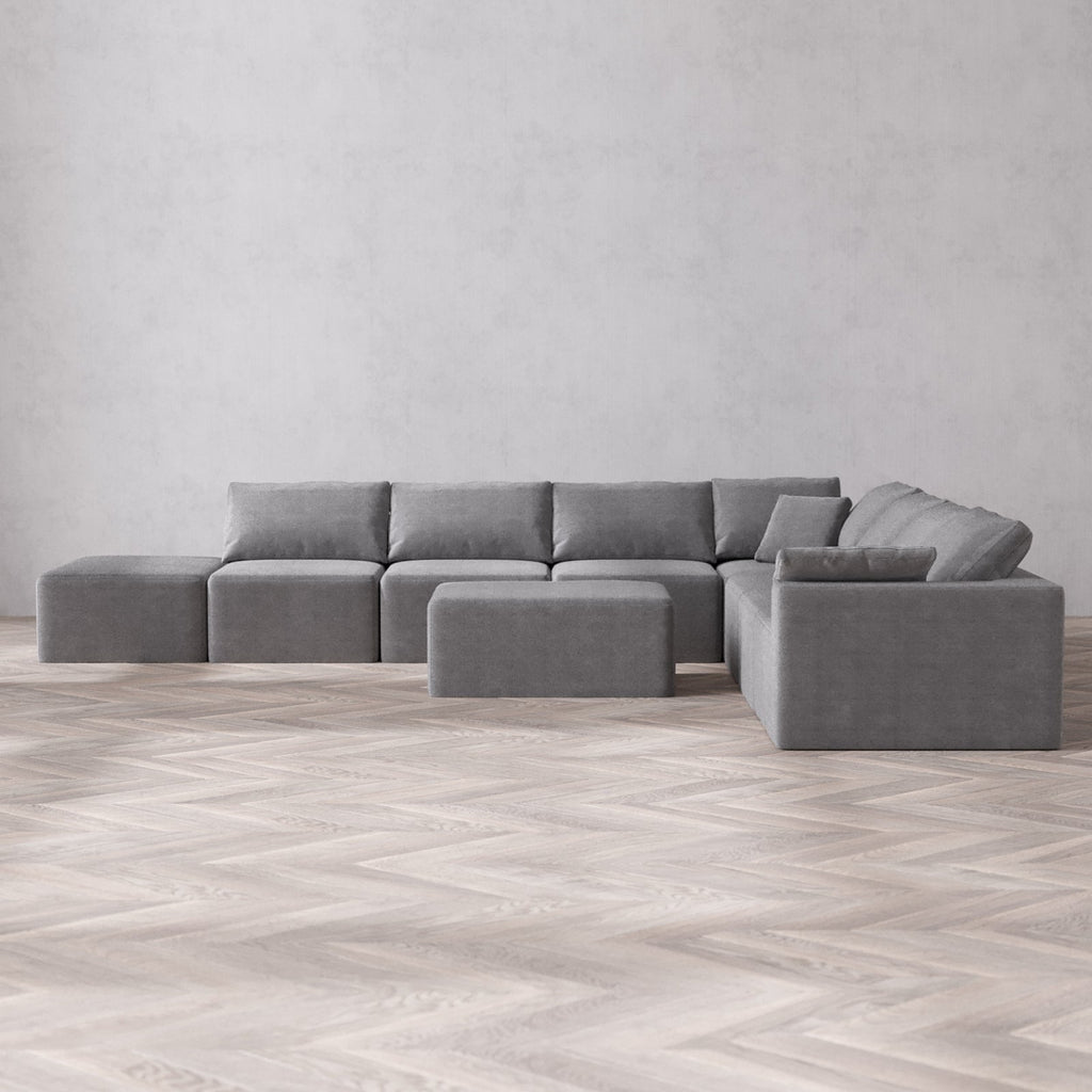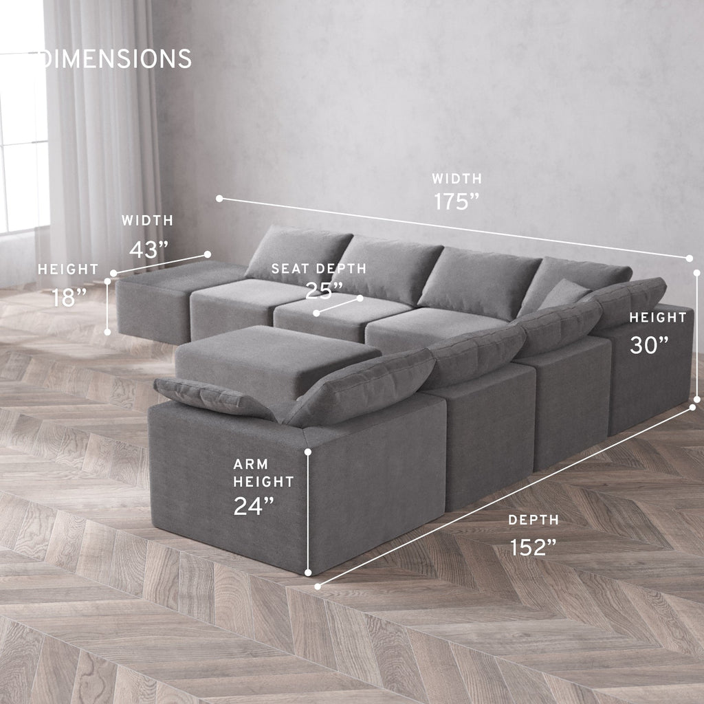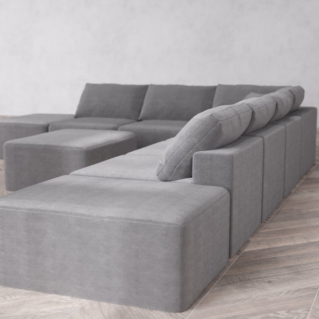 Modular Washable 8-Seater Open End Corner Sectional + Chaise Ottoman Cloud Sofa | Right-Facing Arm | Lux Weave in Slate