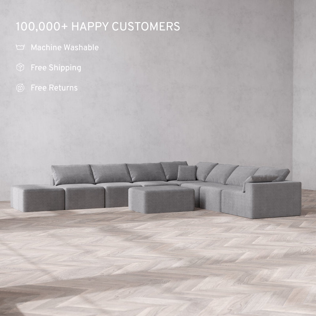 The Only Washable Cloud Sofa: With a waterproof frame and fabrics that resist pets, stains, and spills, this sofa is made to handle everyday messes. Our patent-pending covers are machine washable and fully interchangeable—buy extra sets to change up your look anytime.