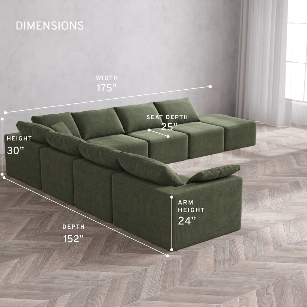 Modular Washable 8-Seater Open End Corner Sectional Cloud Sofa | Left-Facing Arm | Luxe Corduroy in Juniper