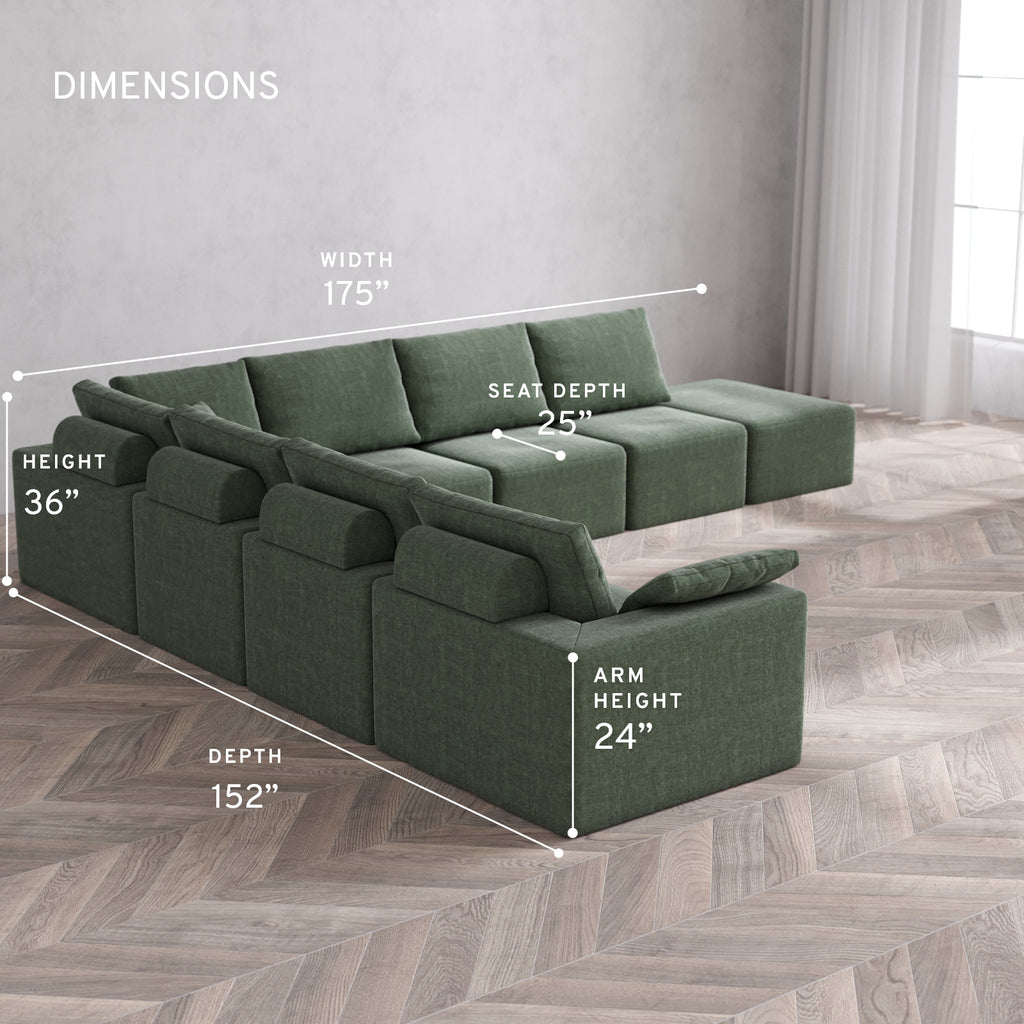 Modular Washable 8-Seater Open End Corner Sectional Cloud + Bolster Sofa | Left-Facing Arm | Heirloom Velvet in Sage
