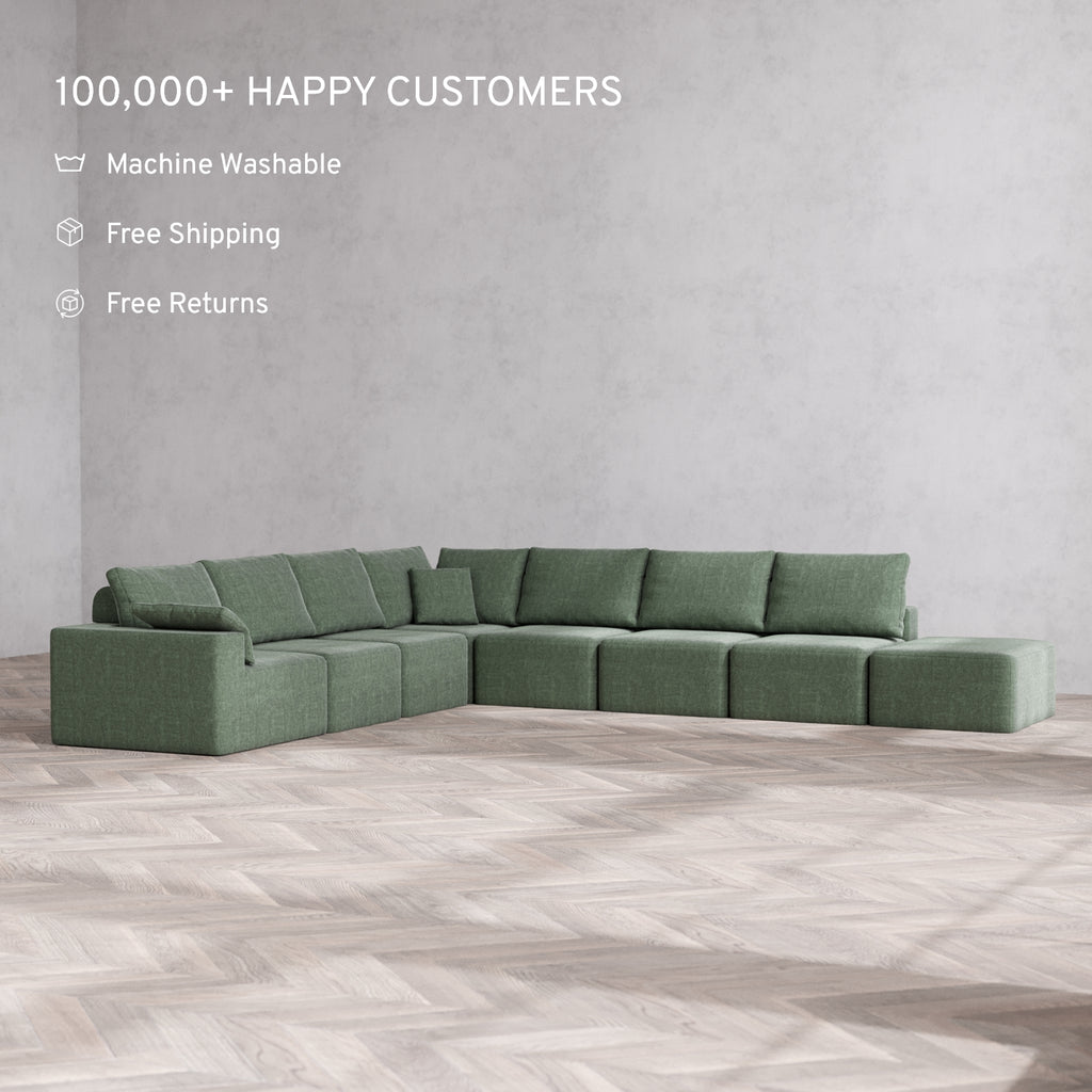 Machine Washable: Every piece of fabric—including the internal quilted duvet—is fully removable and machine washable. It’s the only Cloud-style sofa you can truly deep clean, effortlessly.