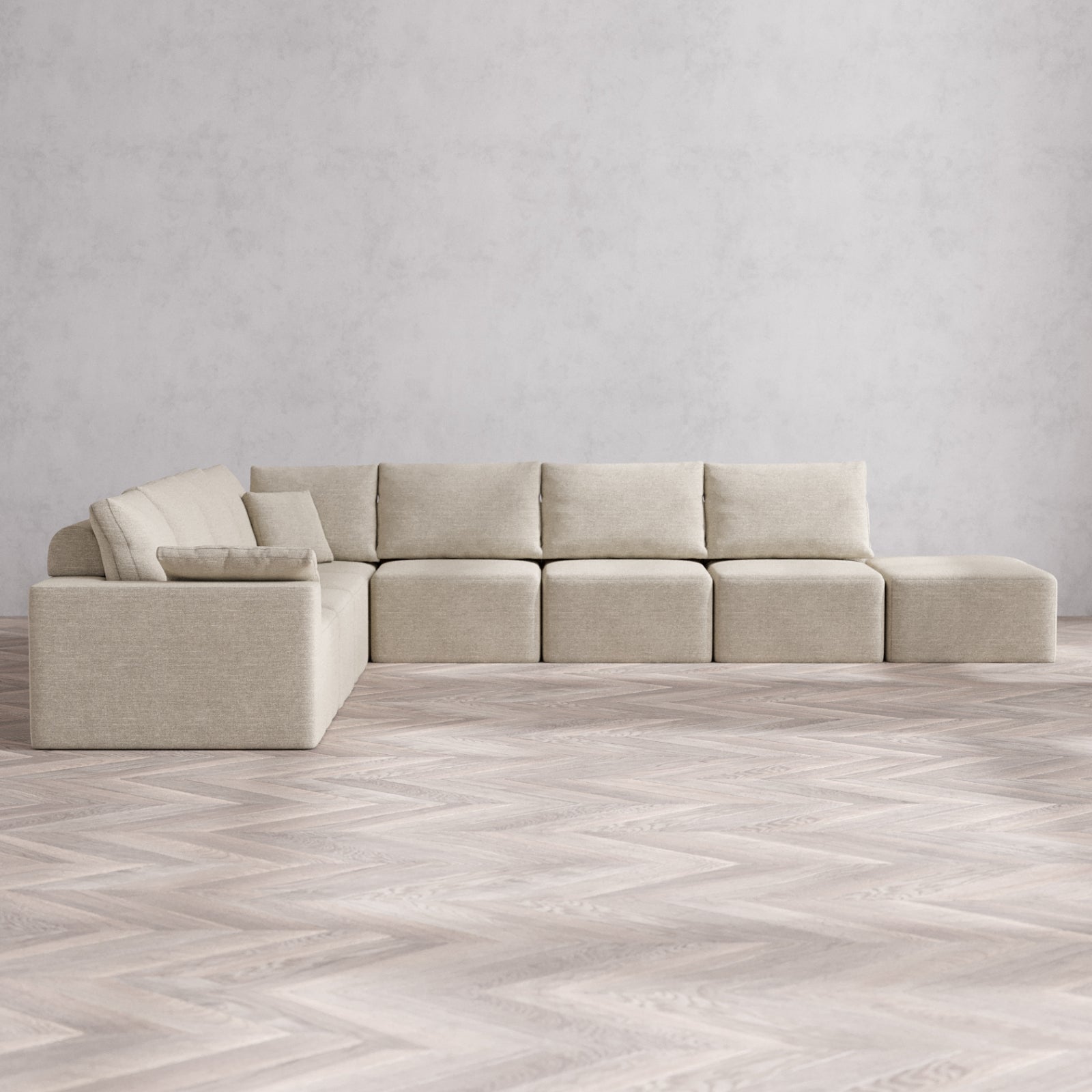 Designed with true flexibility in mind, our modular system adapts to your space and your lifestyle. Whether you're expanding, downsizing, or simply reimagining your layout, each piece connects effortlessly to create a configuration that works for you—today, and as life changes.
