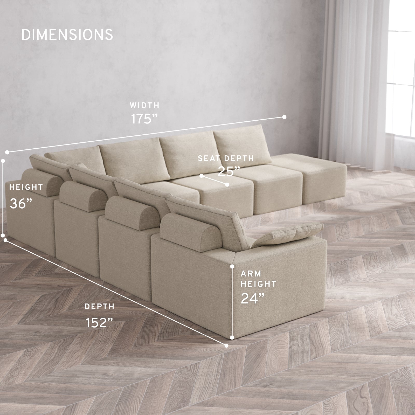 152” Wide, 175” Deep, 36” Tall