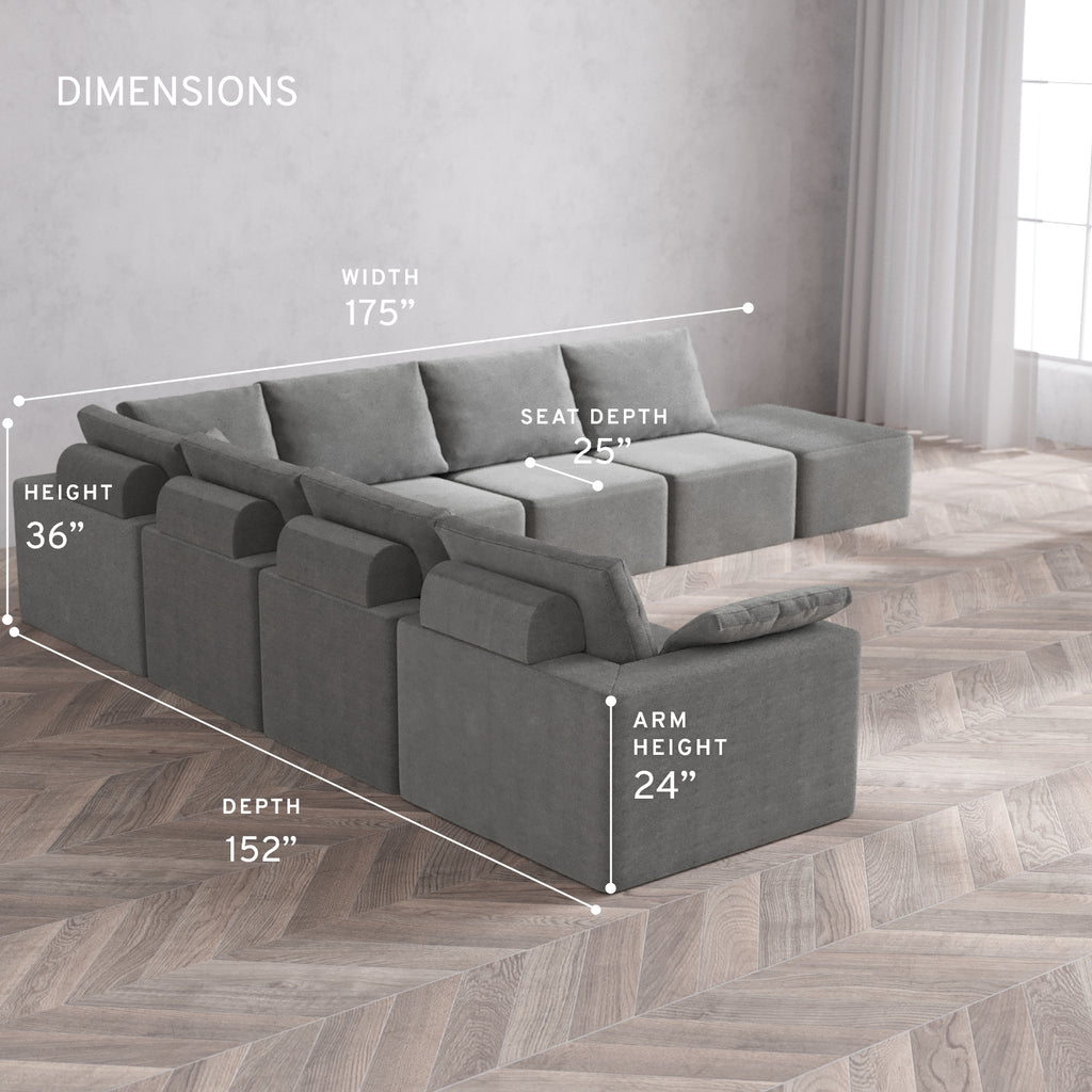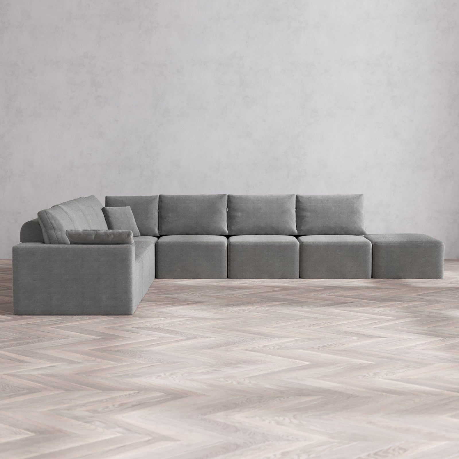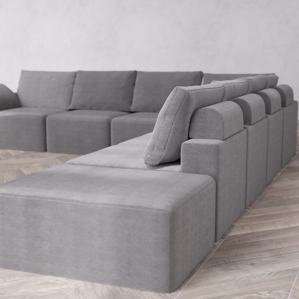 Modular Washable 8-Seater Open End Corner Sectional Cloud + Bolster Sofa | Left-Facing Arm | Lux Weave in Slate