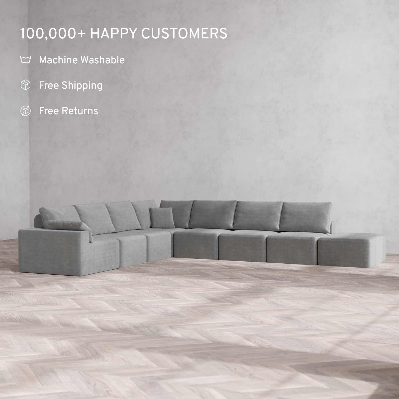 The Only Washable Cloud Sofa: With a waterproof frame and fabrics that resist pets, stains, and spills, this sofa is made to handle everyday messes. Our patent-pending covers are machine washable and fully interchangeable—buy extra sets to change up your look anytime.