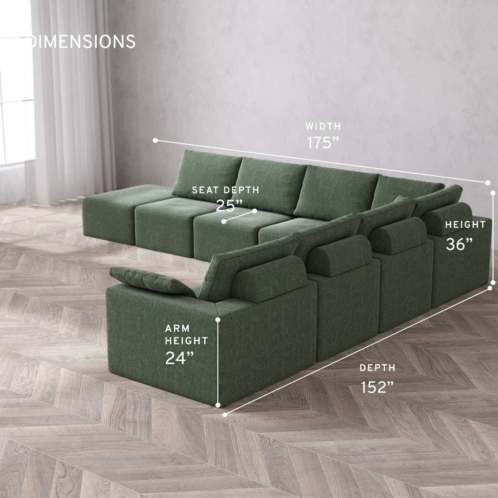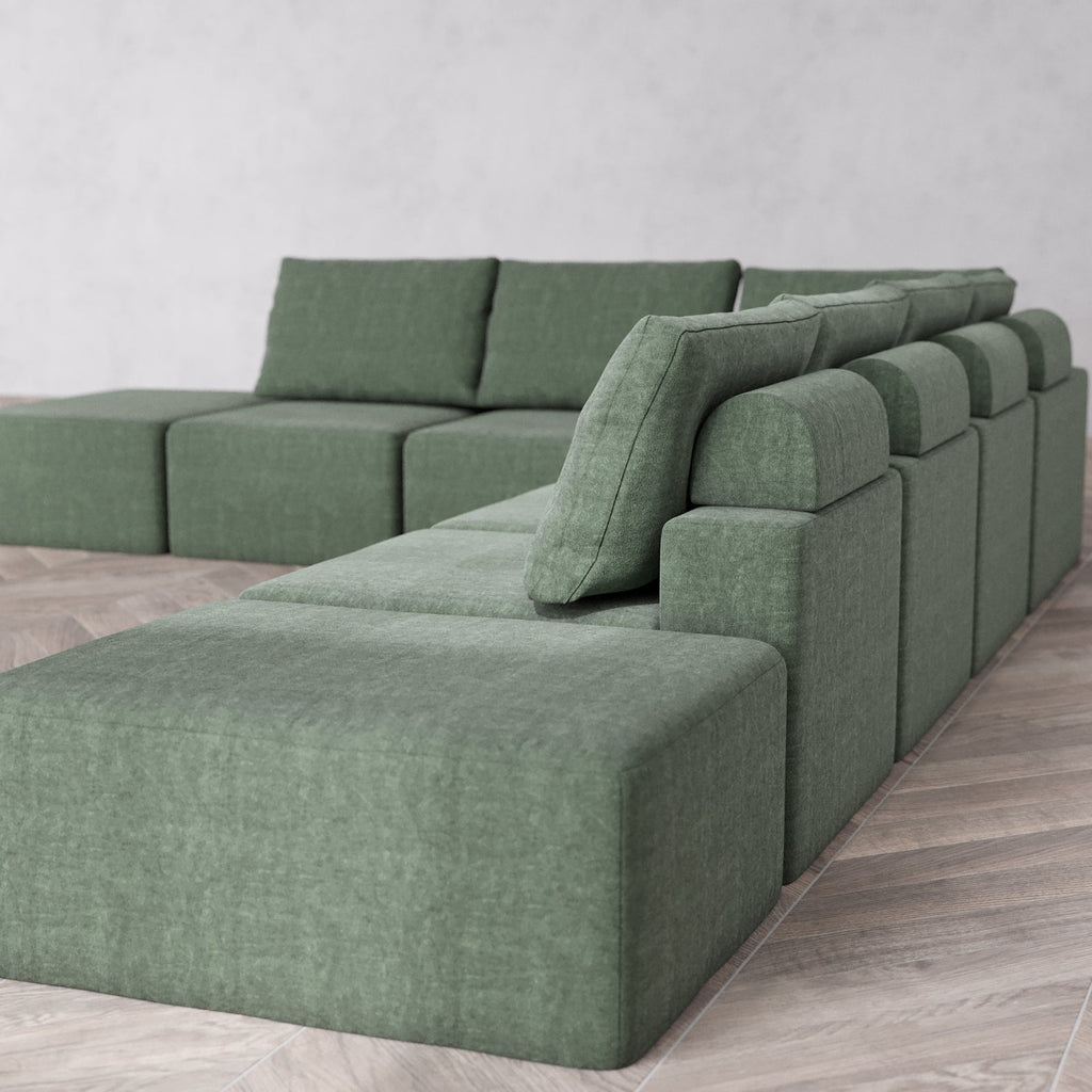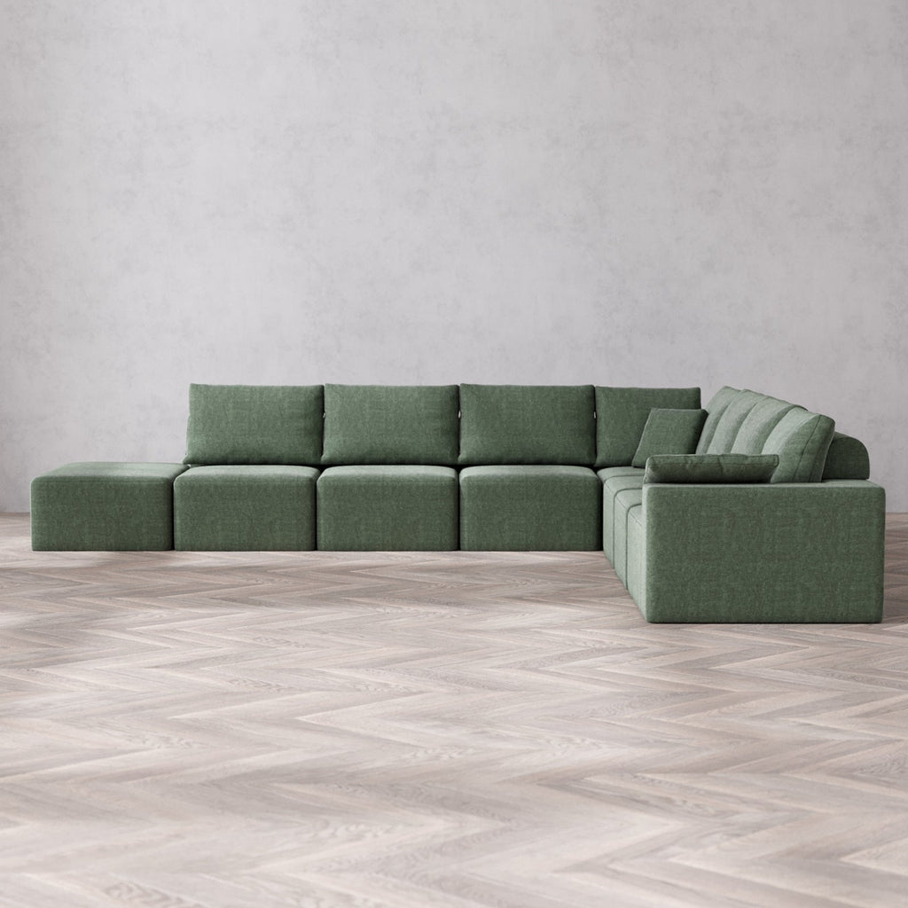 Modular Washable 8-Seater Open End Corner Sectional Cloud + Bolster Sofa | Right-Facing Arm | Heirloom Velvet in Sage