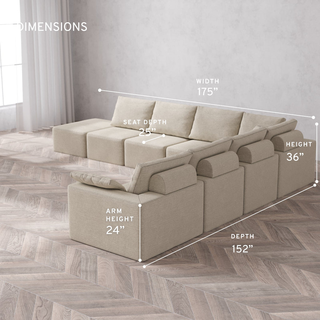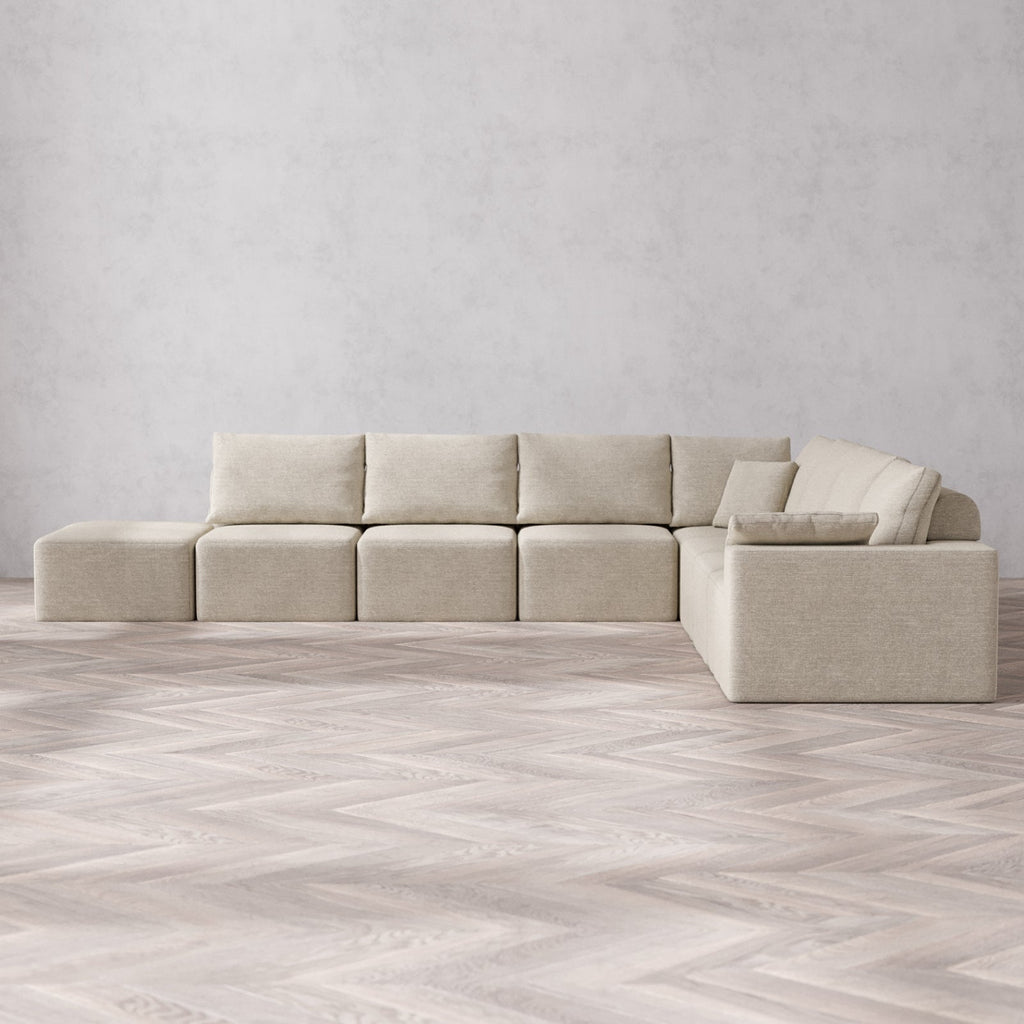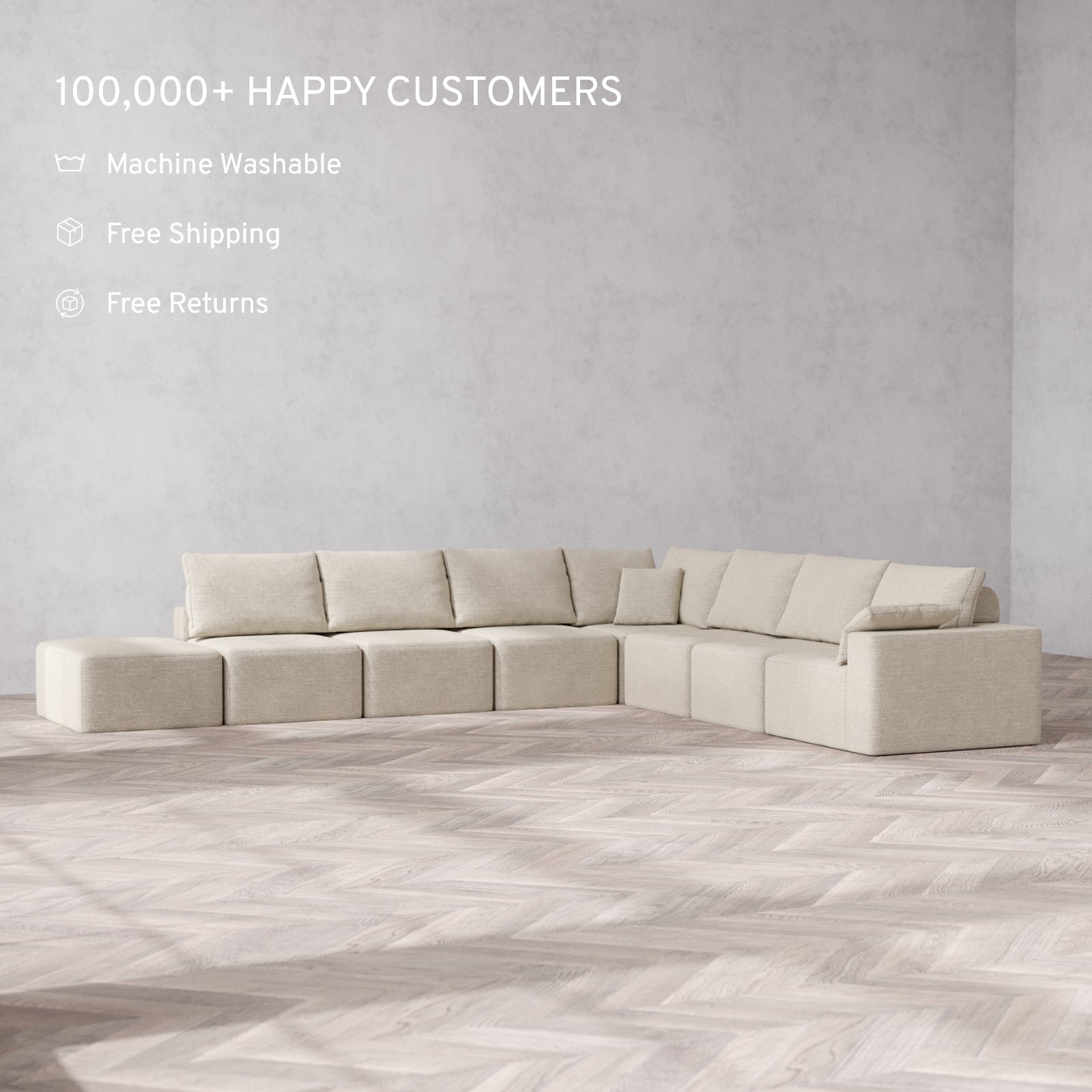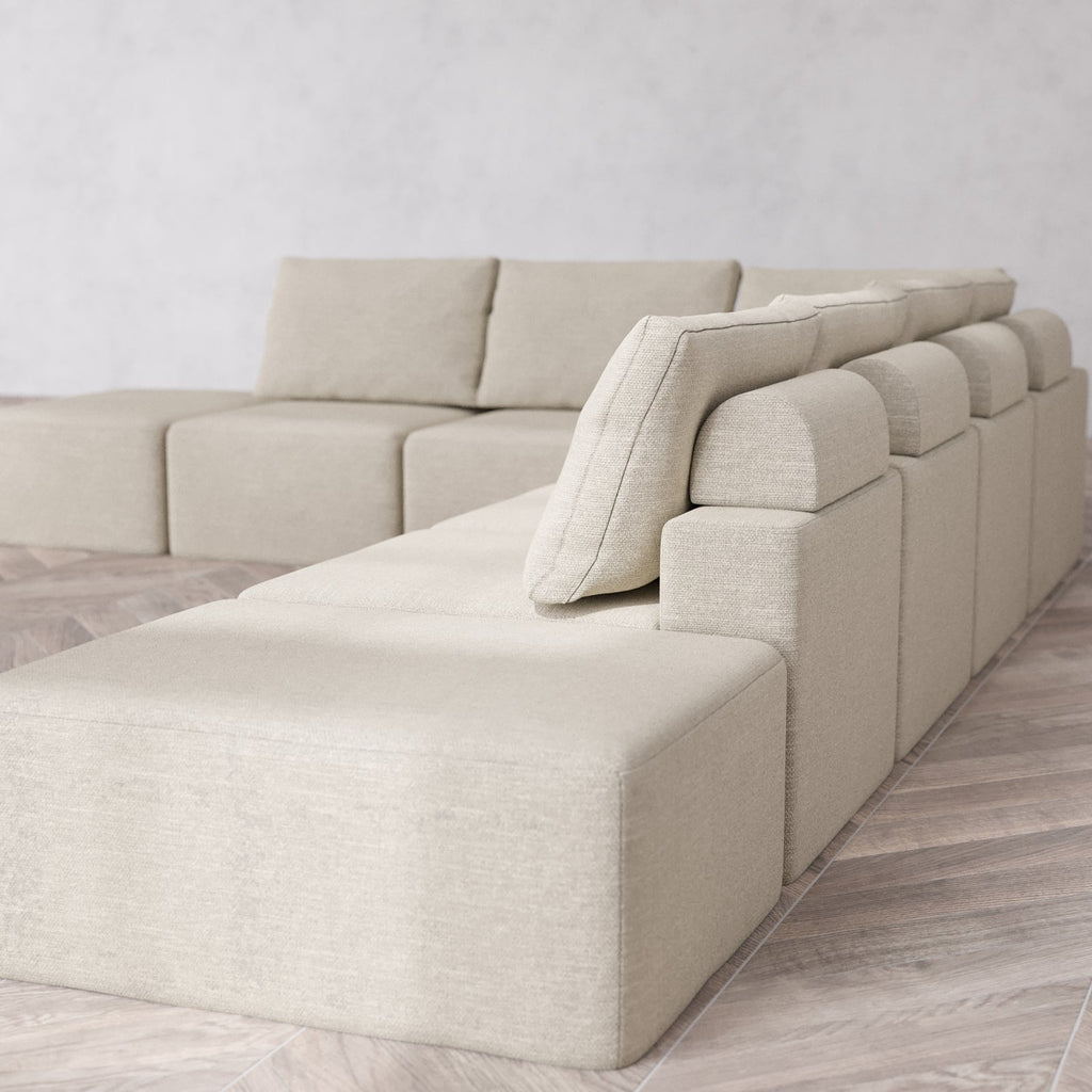 Modular Washable 8-Seater Open End Corner Sectional Cloud + Bolster Sofa | Right-Facing Arm | Plush Twill in Sandstone