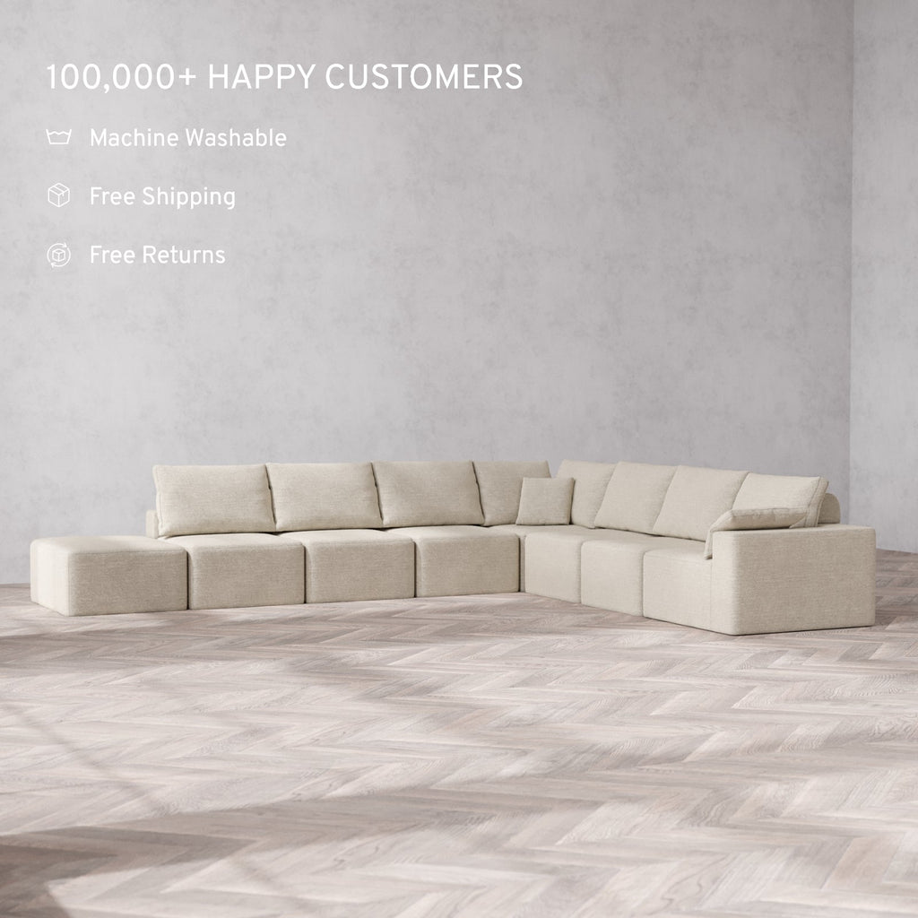 The Only Washable Cloud Sofa: With a waterproof frame and fabrics that resist pets, stains, and spills, this sofa is made to handle everyday messes. Our patent-pending covers are machine washable and fully interchangeable—buy extra sets to change up your look anytime.