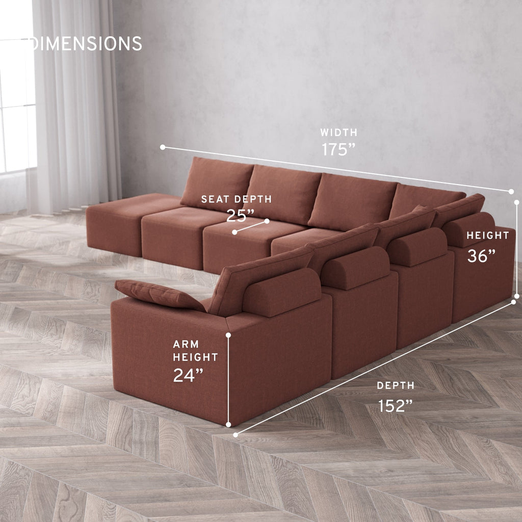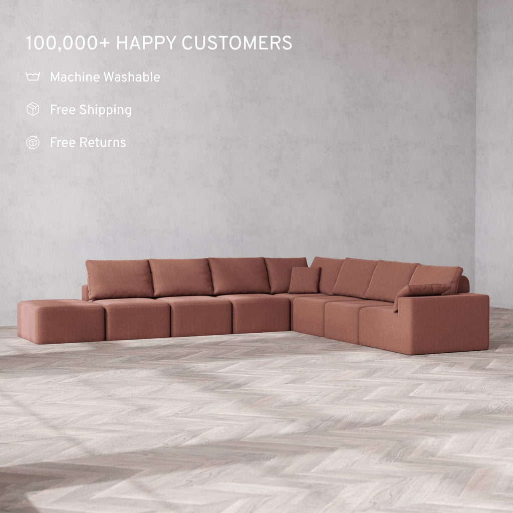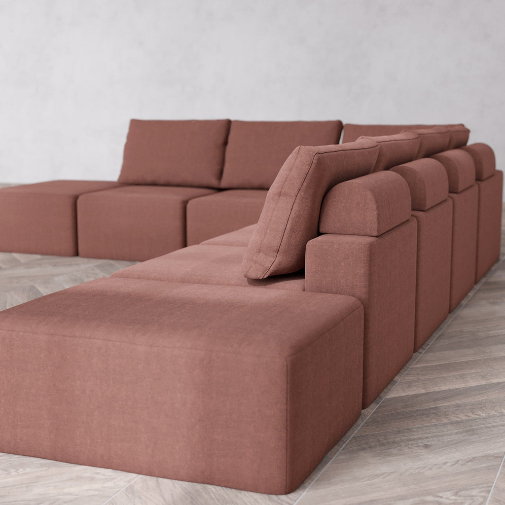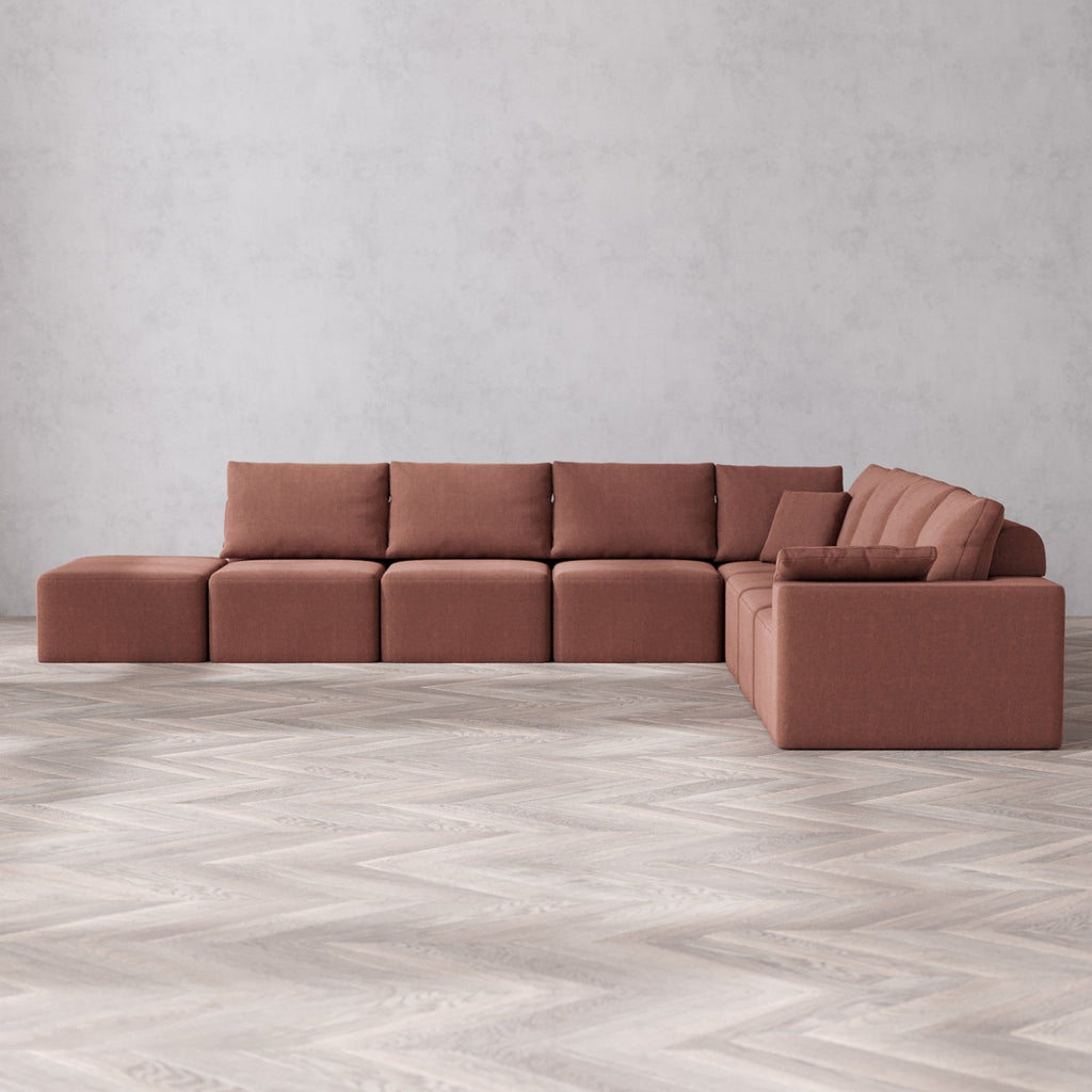 Modular Washable 8-Seater Open End Corner Sectional Cloud + Bolster Sofa | Right-Facing Arm | Heirloom Velvet in Sumac