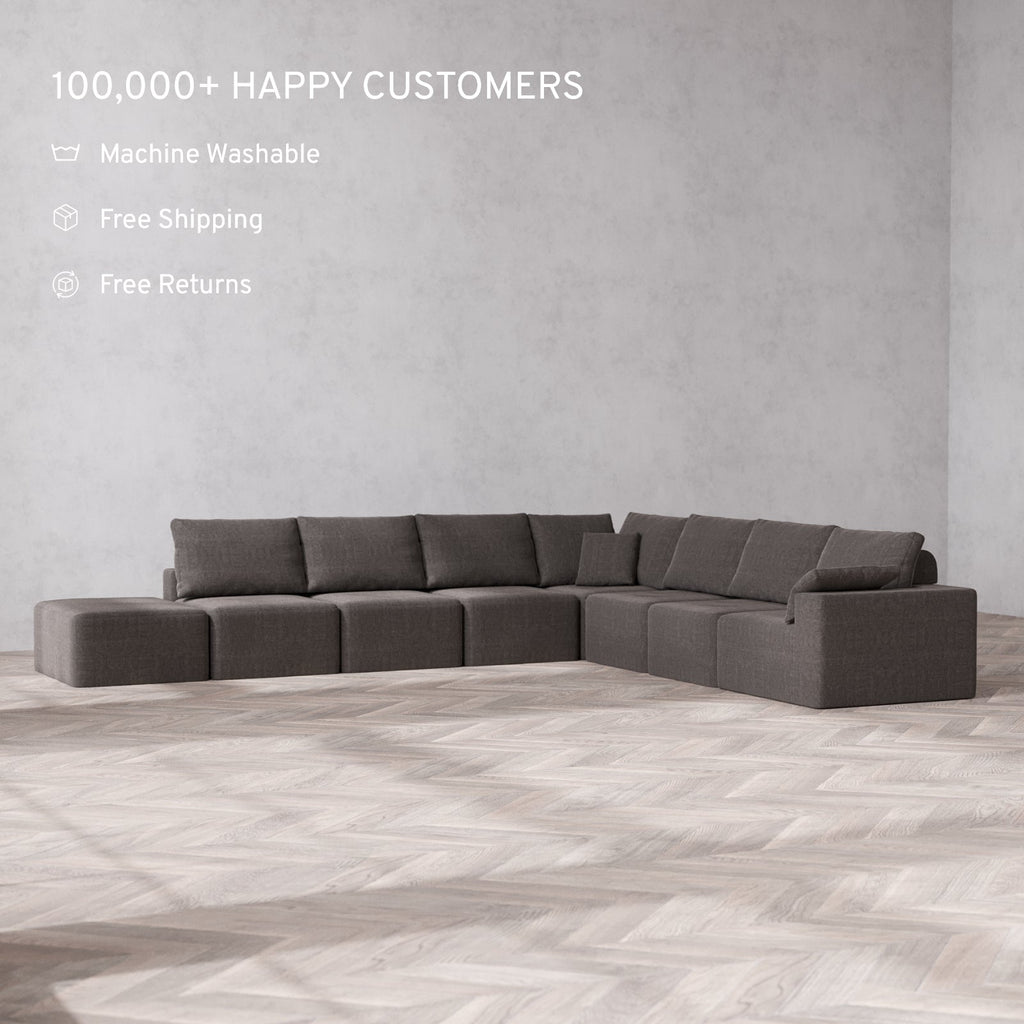 The Only Washable Cloud Sofa: With a waterproof frame and fabrics that resist pets, stains, and spills, this sofa is made to handle everyday messes. Our patent-pending covers are machine washable and fully interchangeable—buy extra sets to change up your look anytime.