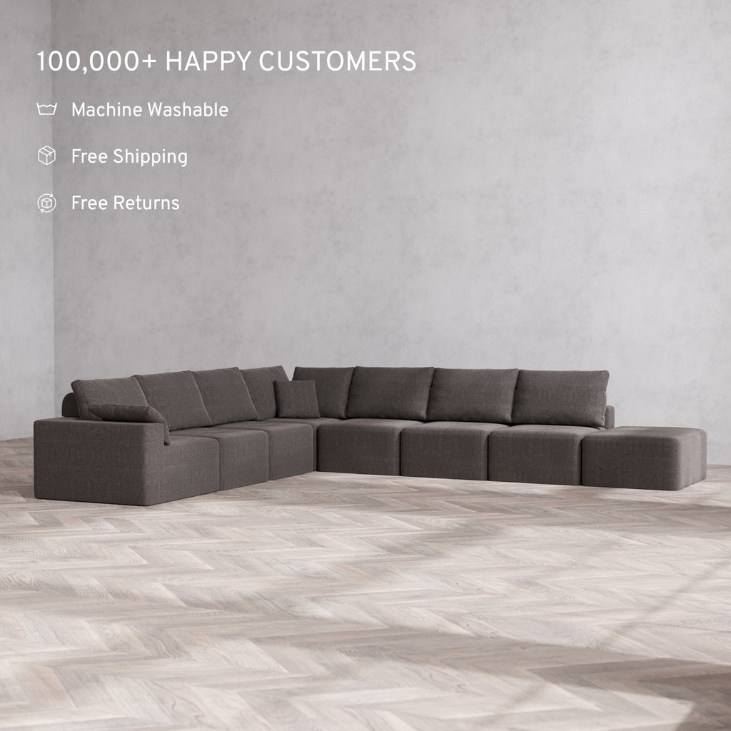 The Only Washable Cloud Sofa: With a waterproof frame and fabrics that resist pets, stains, and spills, this sofa is made to handle everyday messes. Our patent-pending covers are machine washable and fully interchangeable—buy extra sets to change up your look anytime.