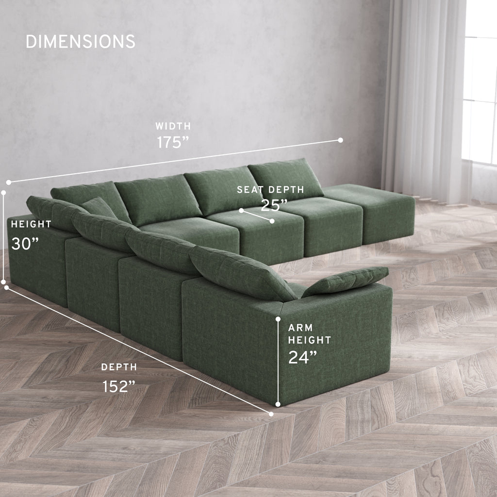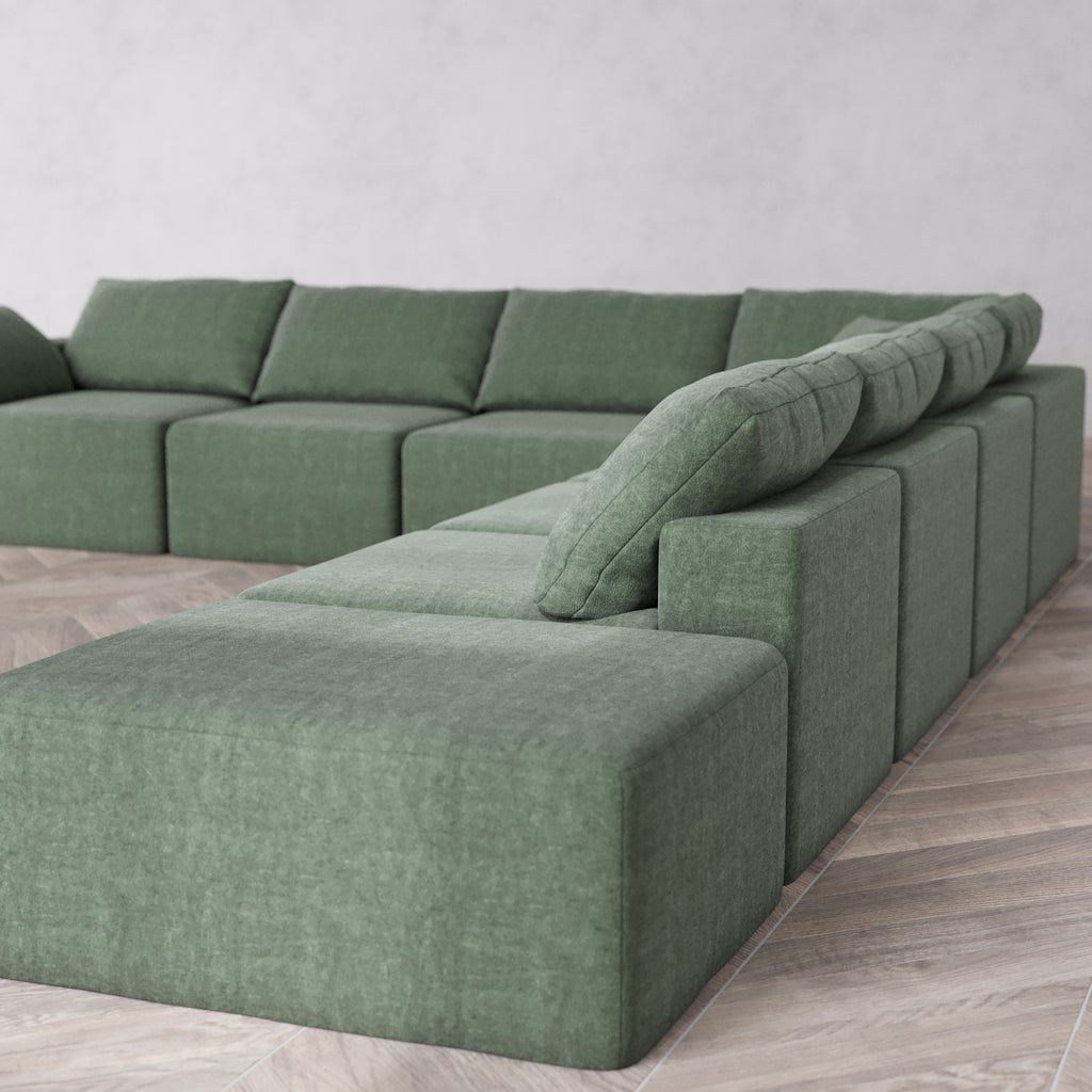 Modular Washable 8-Seater Open End Corner Sectional Cloud Sofa | Left-Facing Arm | Heirloom Velvet in Sage