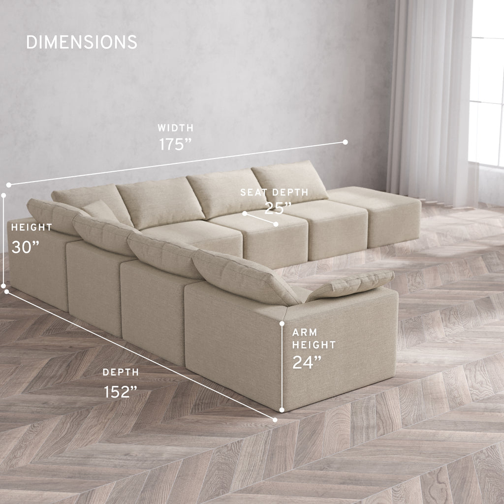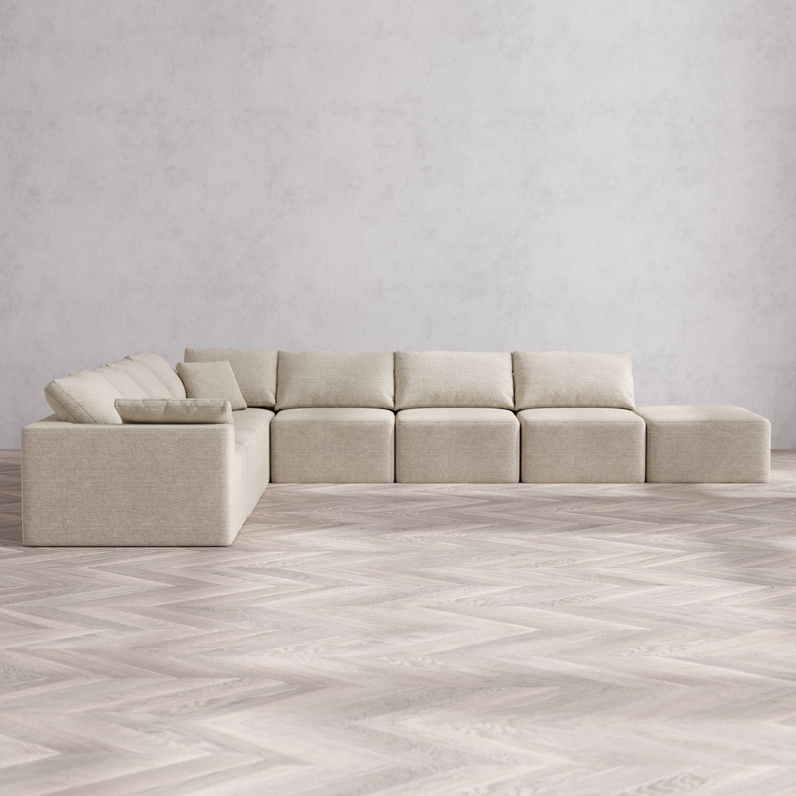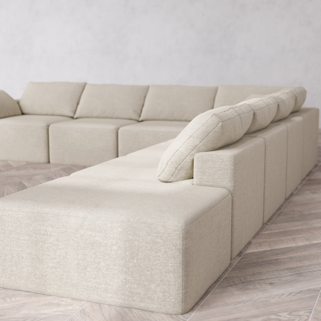 Modular Washable 8-Seater Open End Corner Sectional Cloud Sofa | Left-Facing Arm | Plush Twill in Sandstone