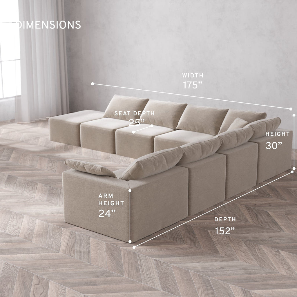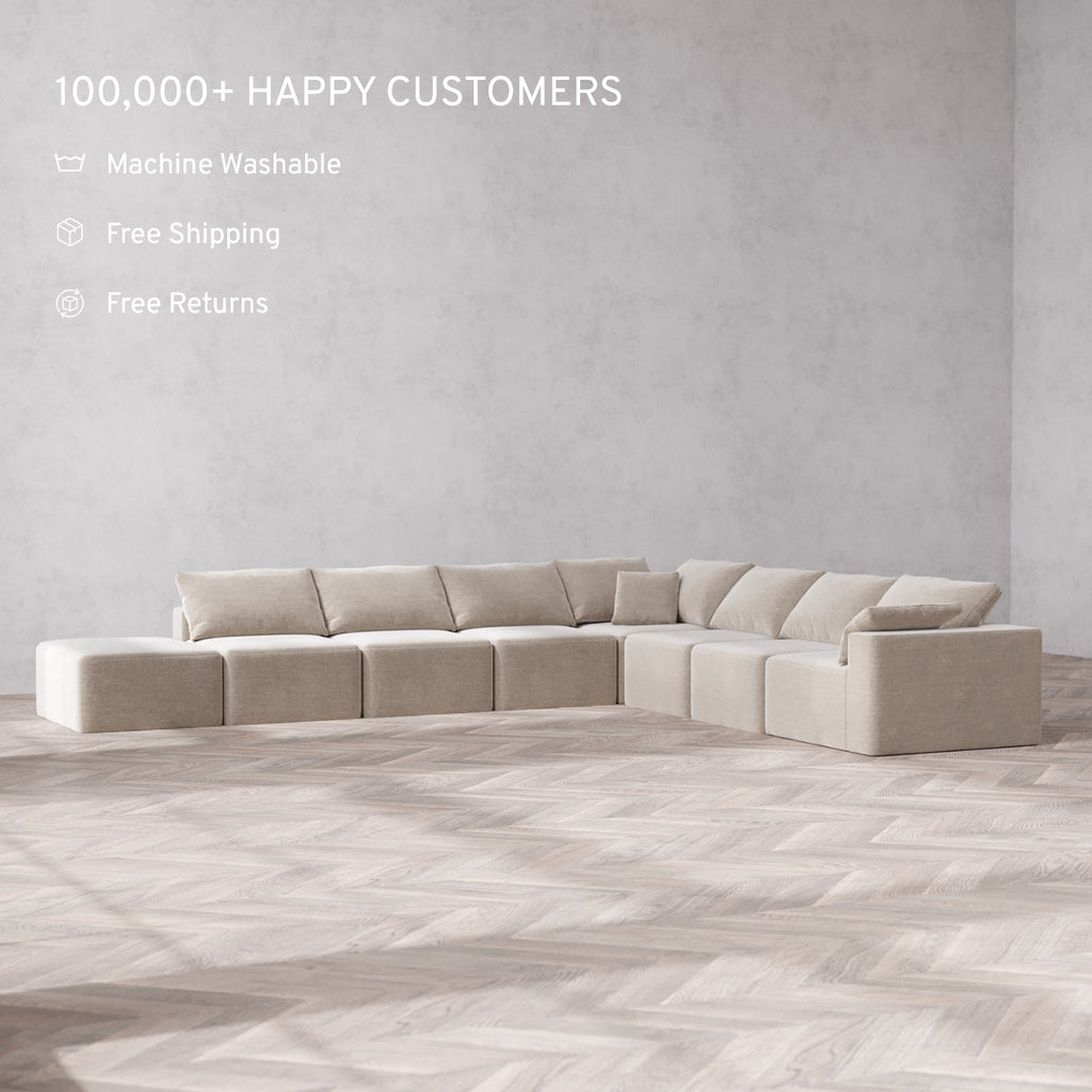 Machine Washable: Every piece of fabric—including the internal quilted duvet—is fully removable and machine washable. It’s the only Cloud-style sofa you can truly deep clean, effortlessly.