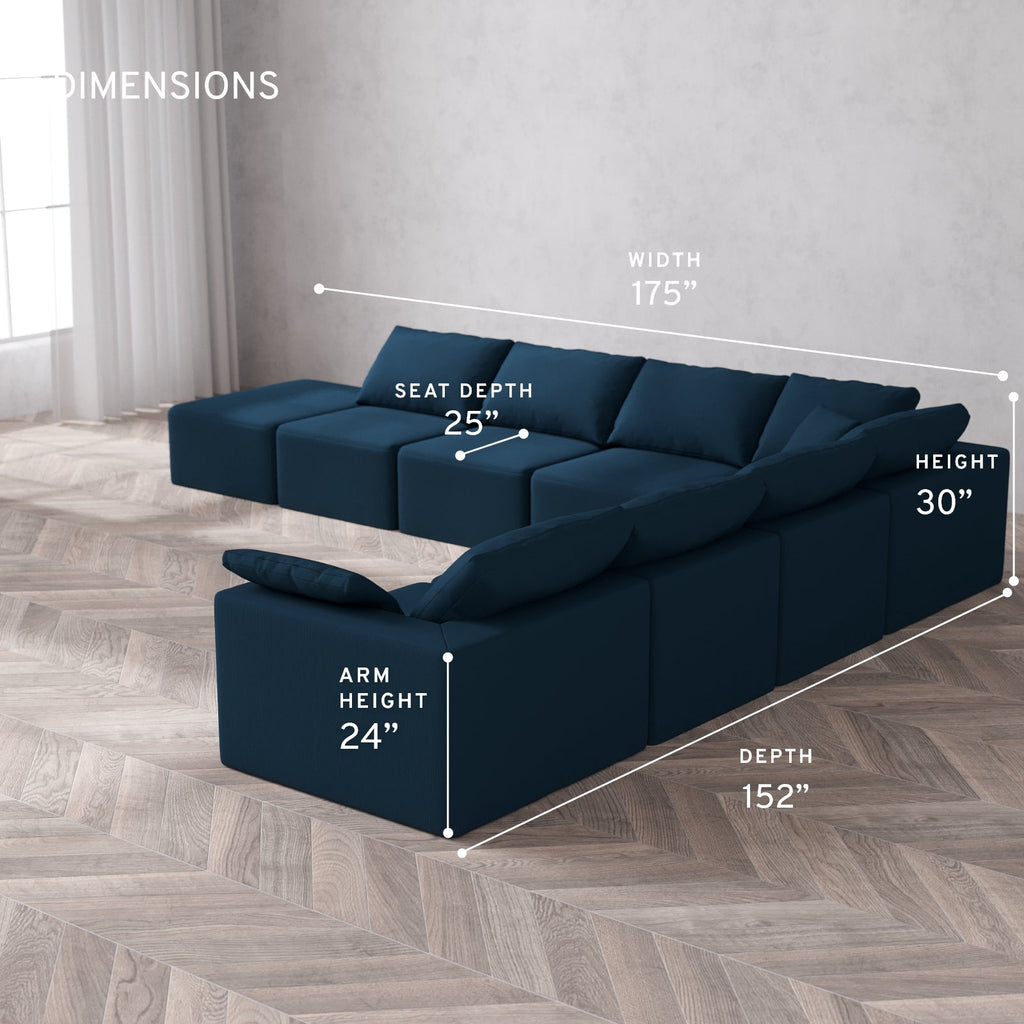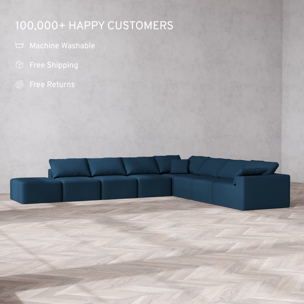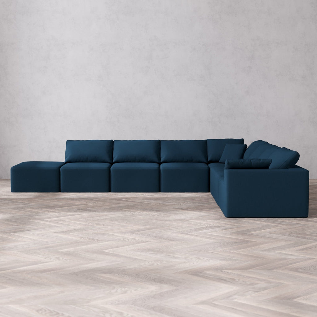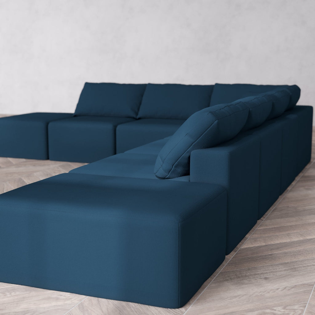 Modular Washable 8-Seater Open End Corner Sectional Cloud Sofa | Right-Facing Arm | Arden Weave in Lazuli