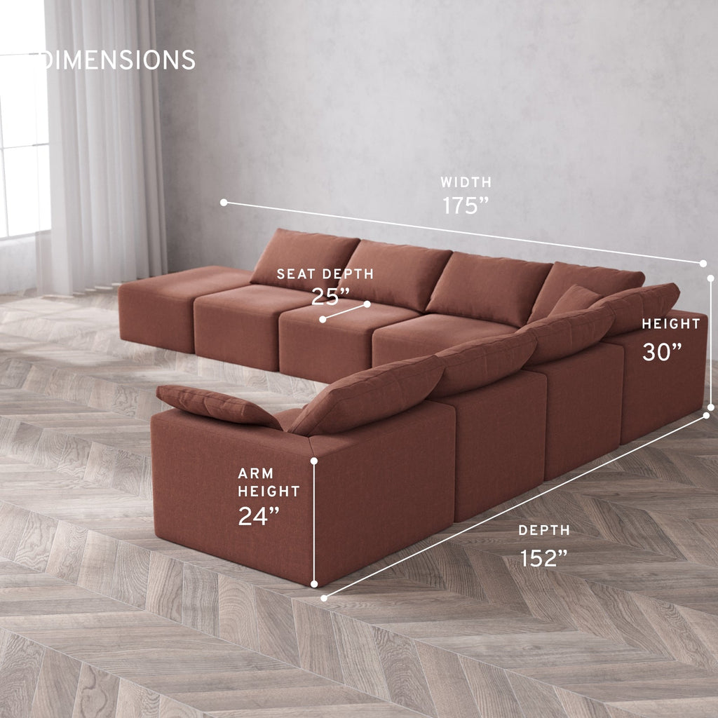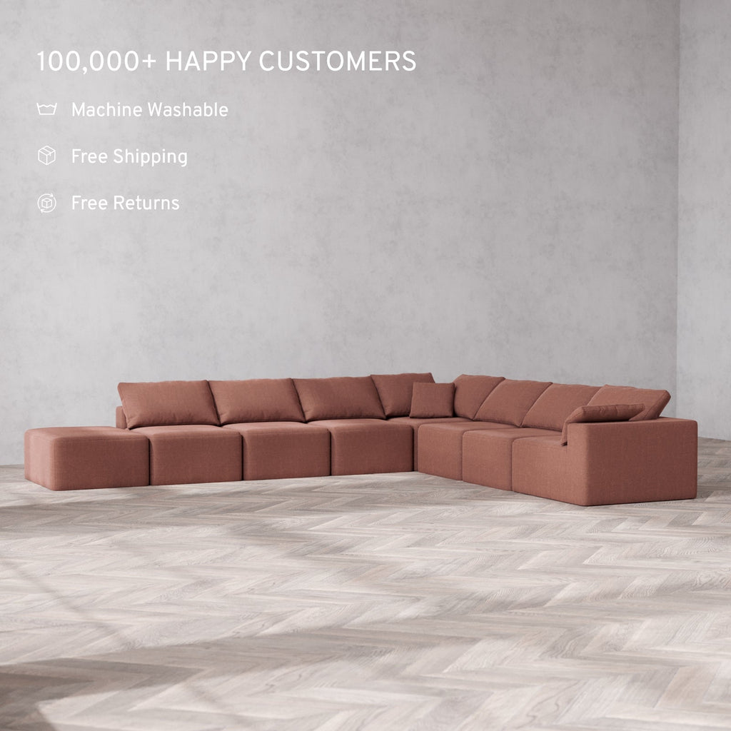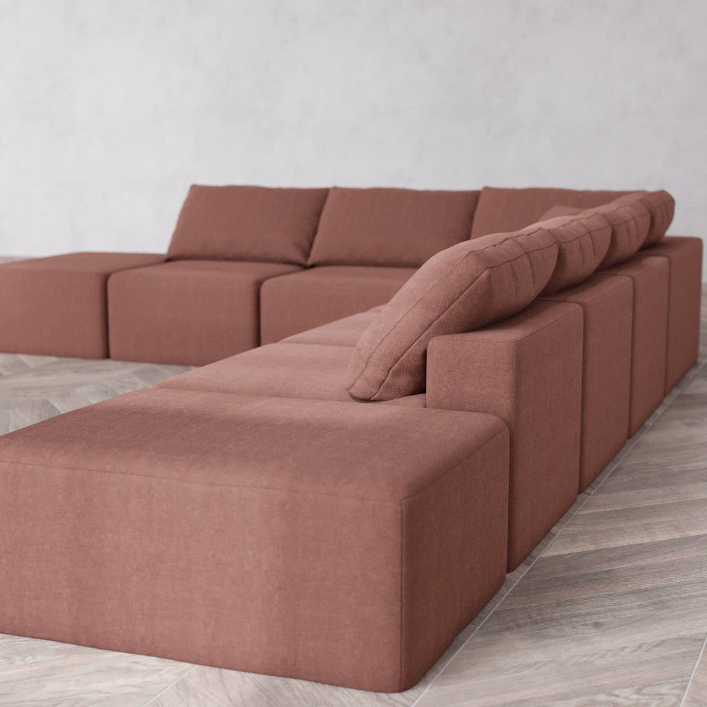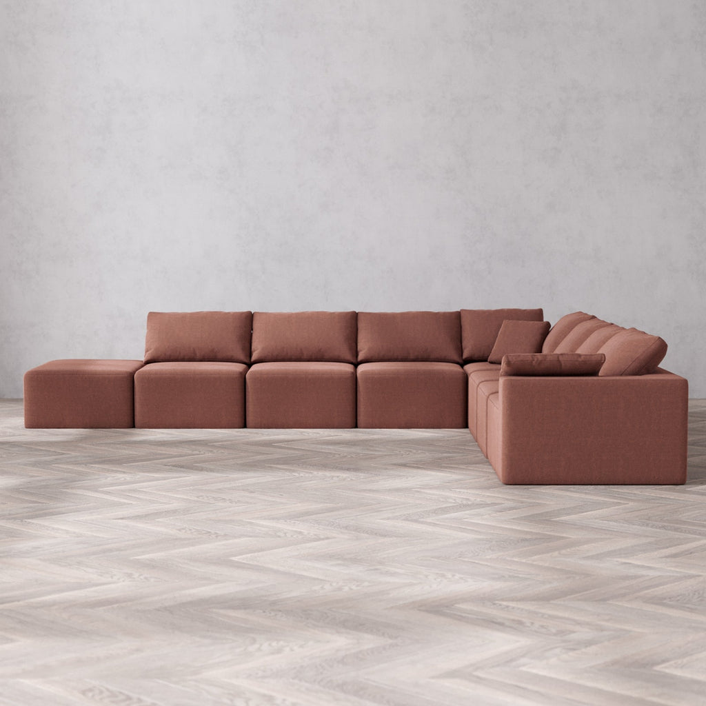 Modular Washable 8-Seater Open End Corner Sectional Cloud Sofa | Right-Facing Arm | Heirloom Velvet in Sumac