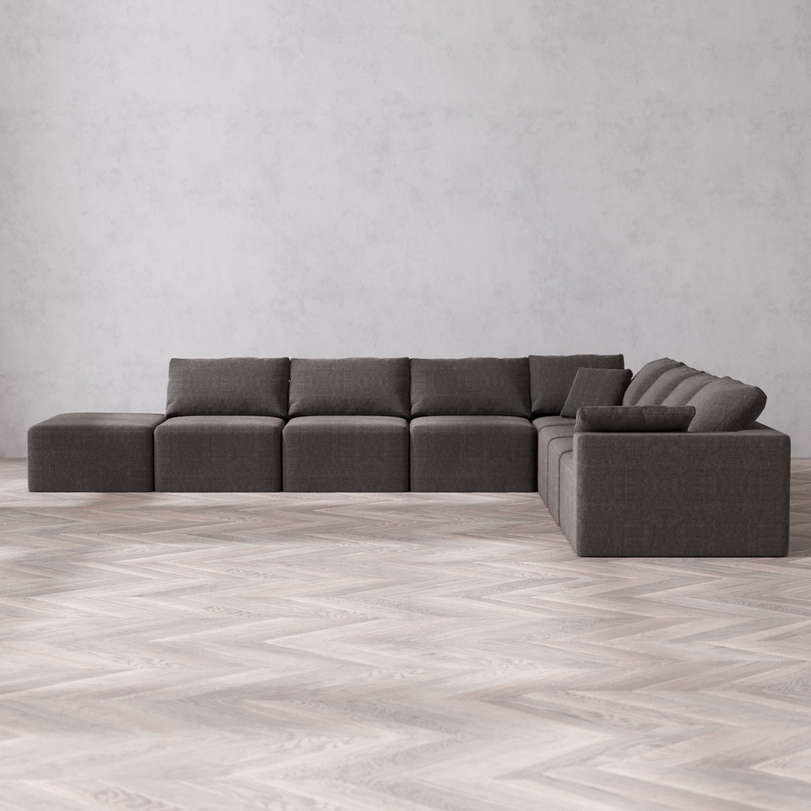 Modular Washable 8-Seater Open End Corner Sectional Cloud Sofa | Right-Facing Arm | Heirloom Velvet in Truffle