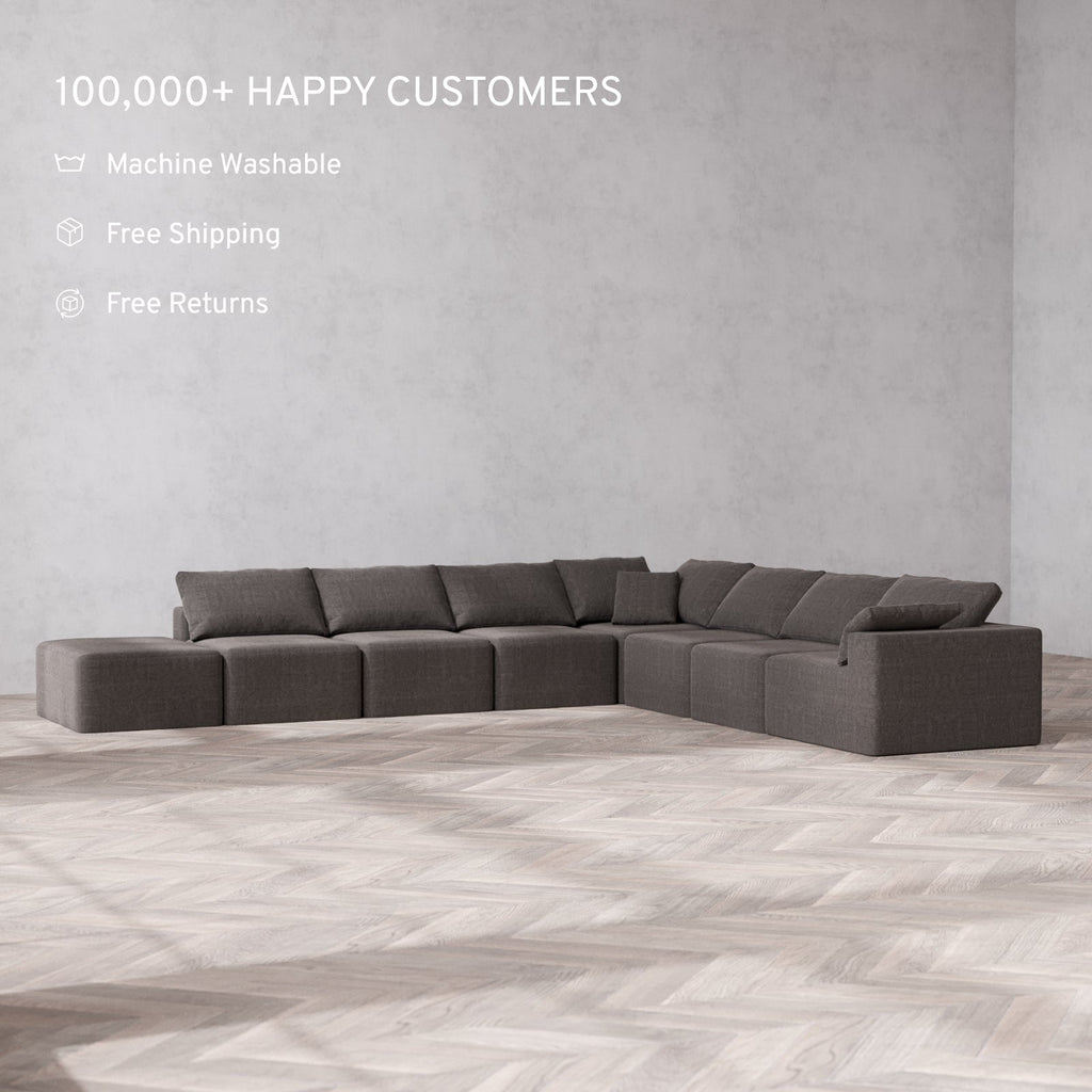 Machine Washable: Every piece of fabric—including the internal quilted duvet—is fully removable and machine washable. It’s the only Cloud-style sofa you can truly deep clean, effortlessly.