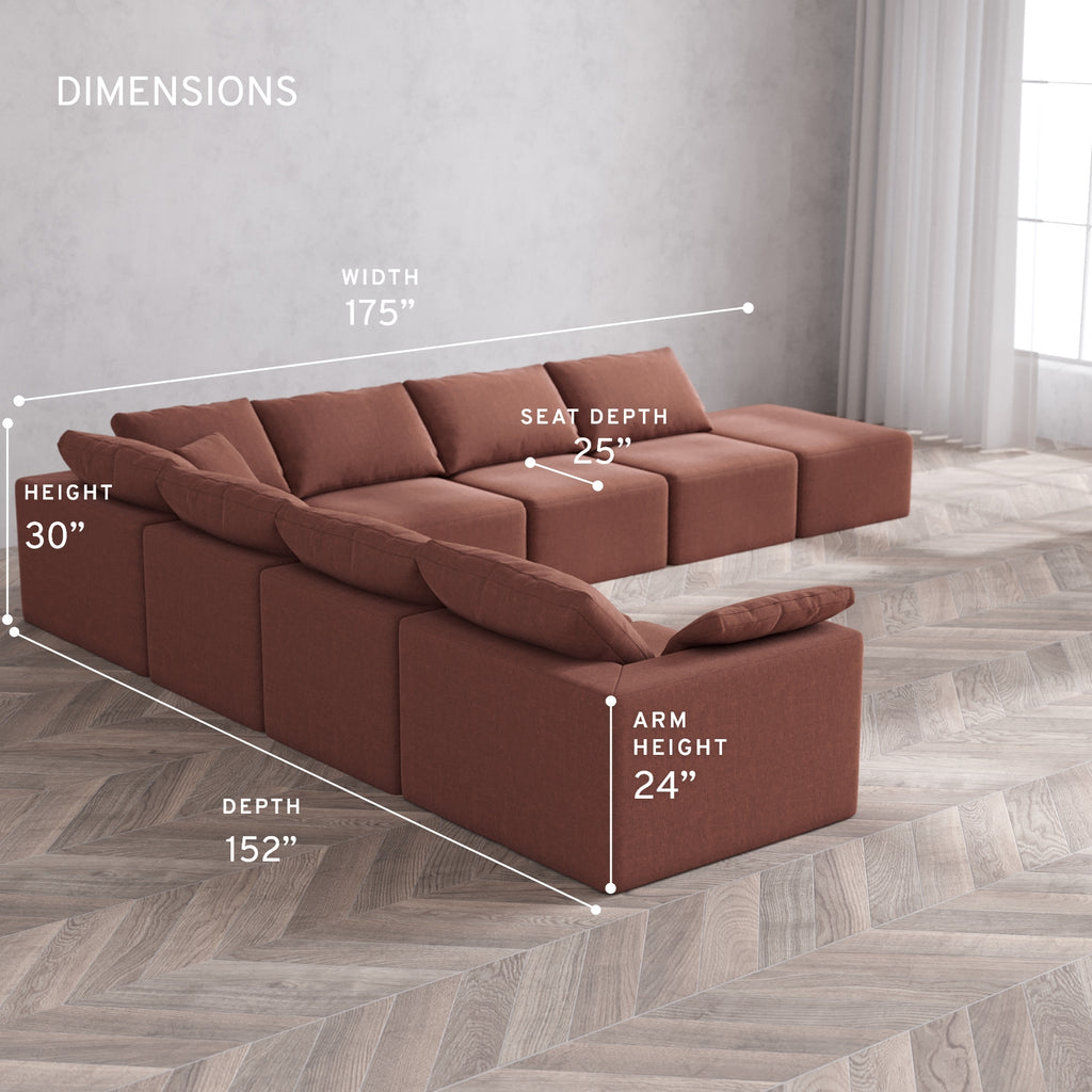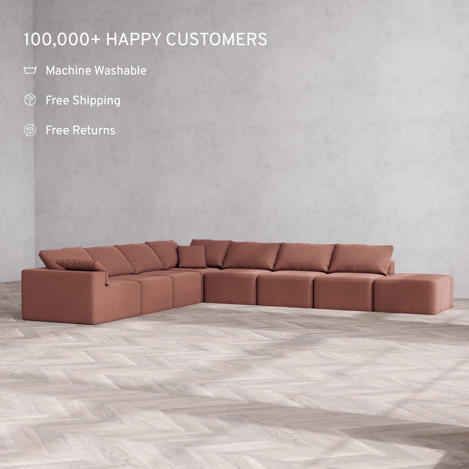Modular Washable 8-Seater Open End Corner Sectional Cloud Sofa | Left-Facing Arm | Heirloom Velvet in Sumac