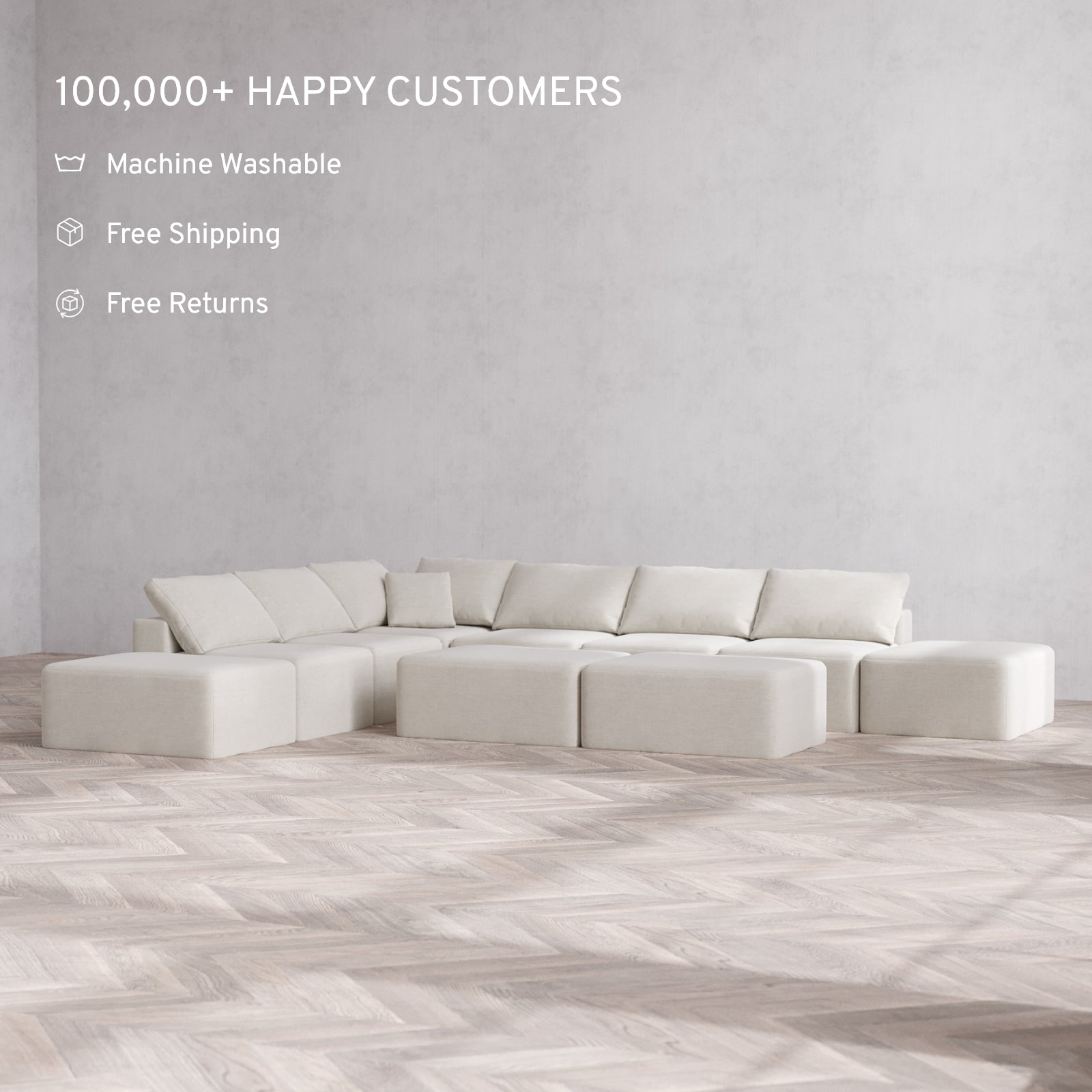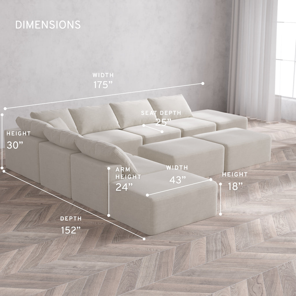 Machine Washable: Every piece of fabric—including the internal quilted duvet—is fully removable and machine washable. It’s the only Cloud-style sofa you can truly deep clean, effortlessly.