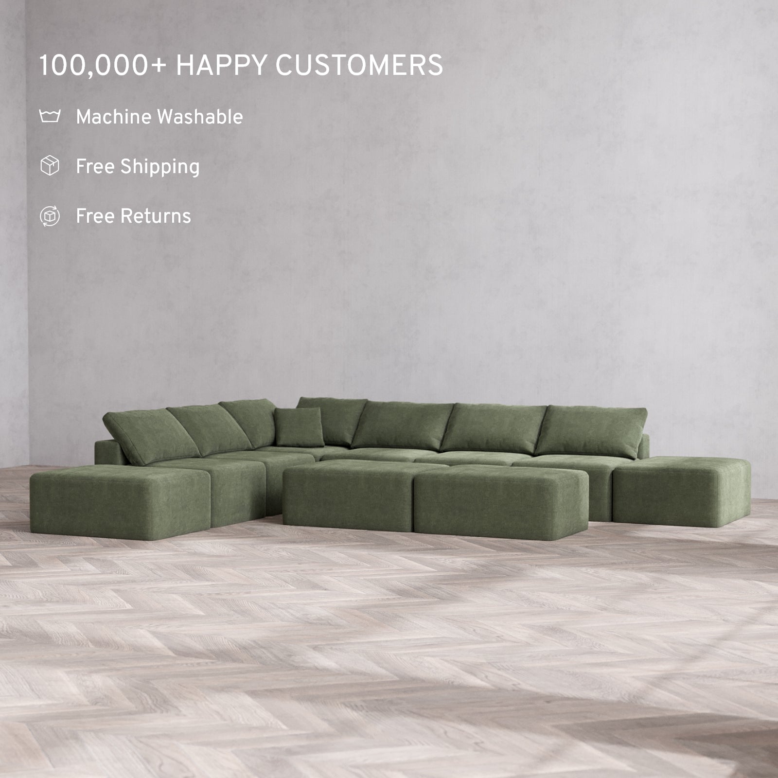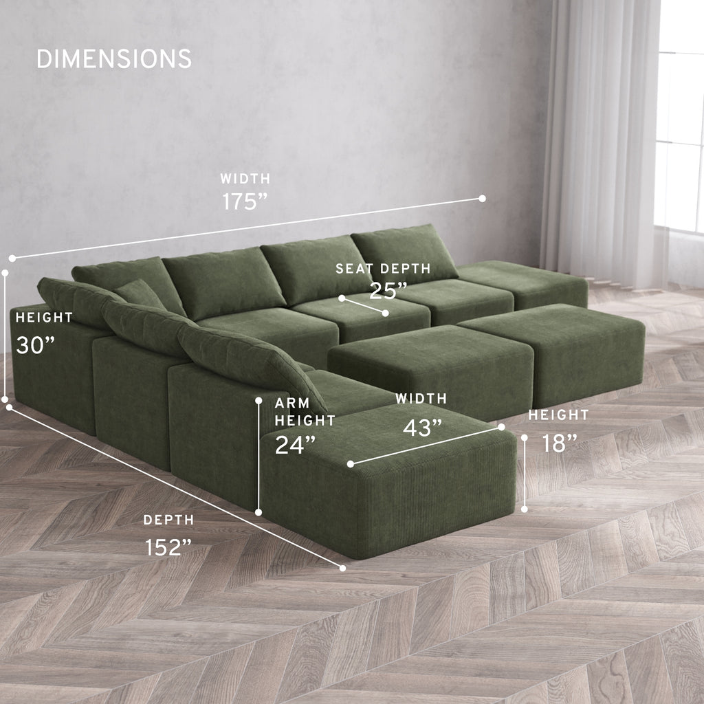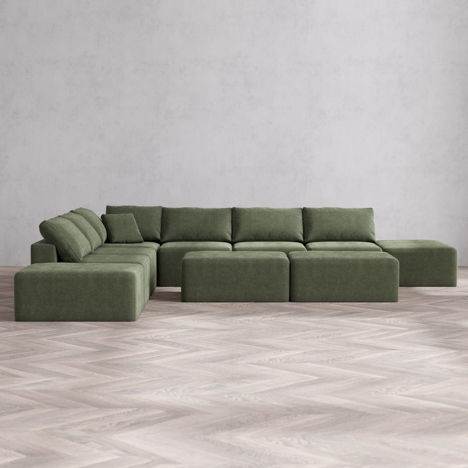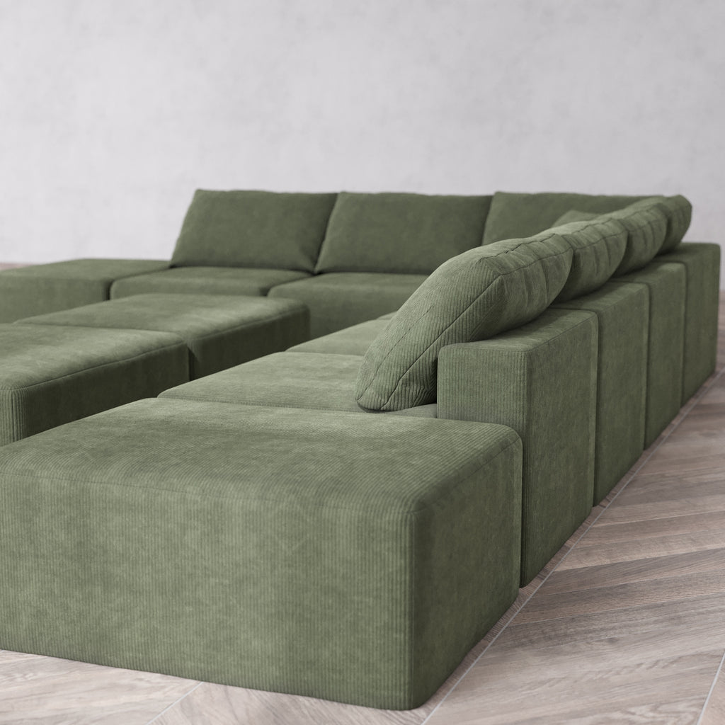 Modular Washable 8-Seater Open-Ends Corner Sectional + Chaise Ottoman Bench Cloud Sofa | Luxe Corduroy in Juniper