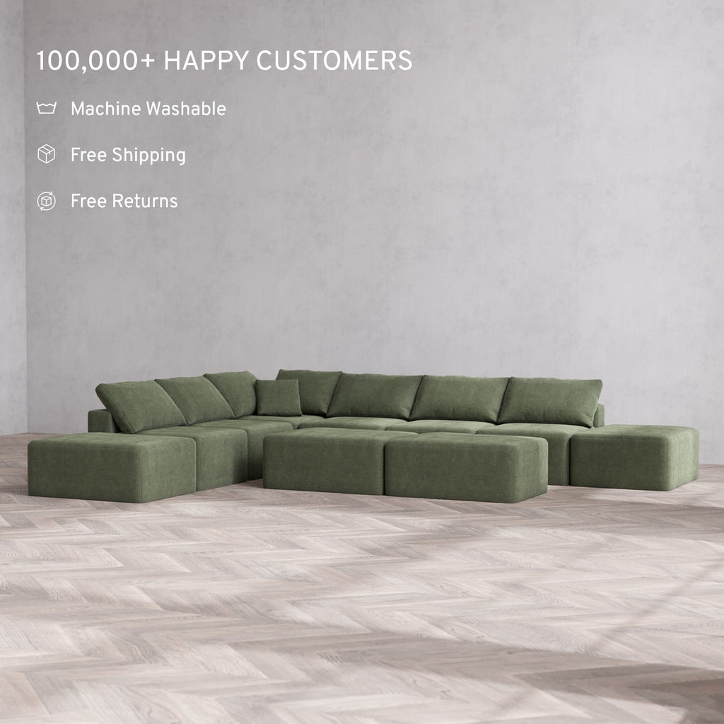 Machine Washable: Every piece of fabric—including the internal quilted duvet—is fully removable and machine washable. It’s the only Cloud-style sofa you can truly deep clean, effortlessly.