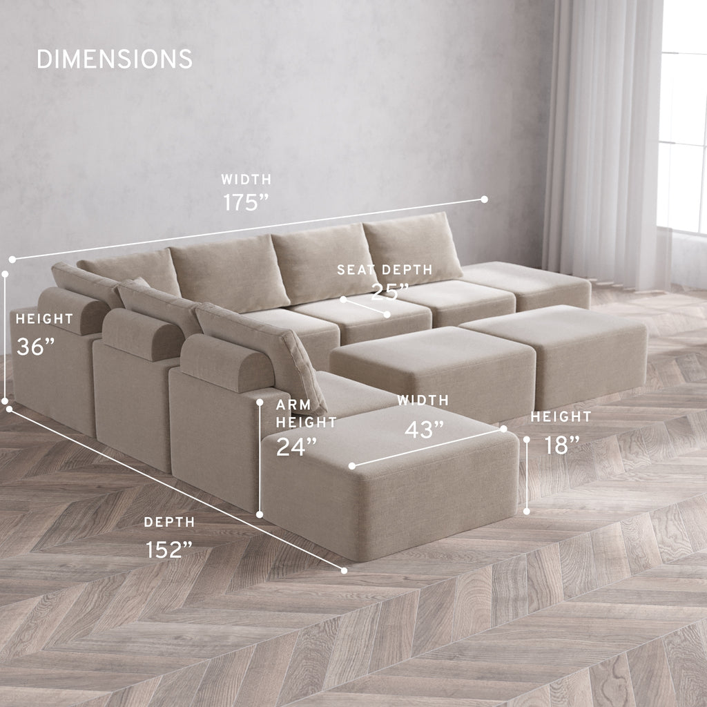 Machine Washable: Every piece of fabric—including the internal quilted duvet—is fully removable and machine washable. It’s the only Cloud-style sofa you can truly deep clean, effortlessly.