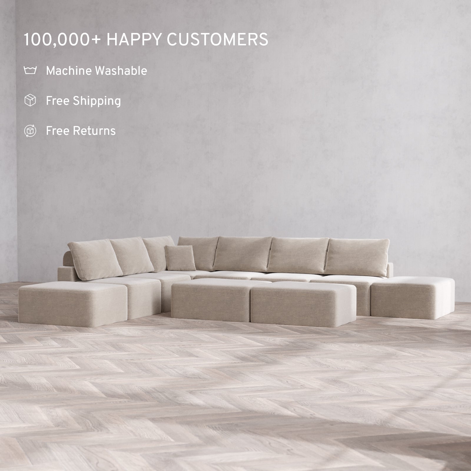 The Only Washable Cloud Sofa: With a waterproof frame and fabrics that resist pets, stains, and spills, this sofa is made to handle everyday messes. Our patent-pending covers are machine washable and fully interchangeable—buy extra sets to change up your look anytime.