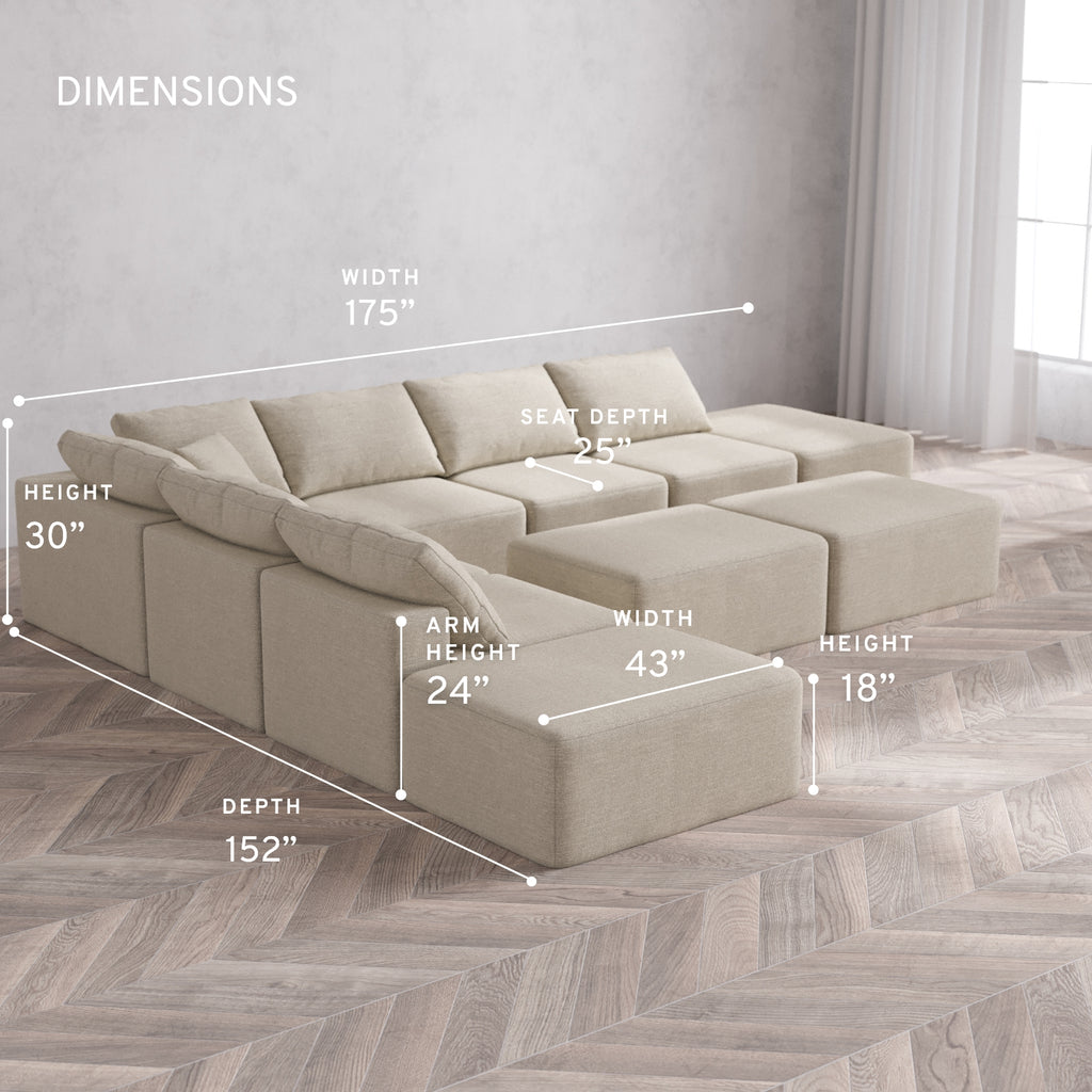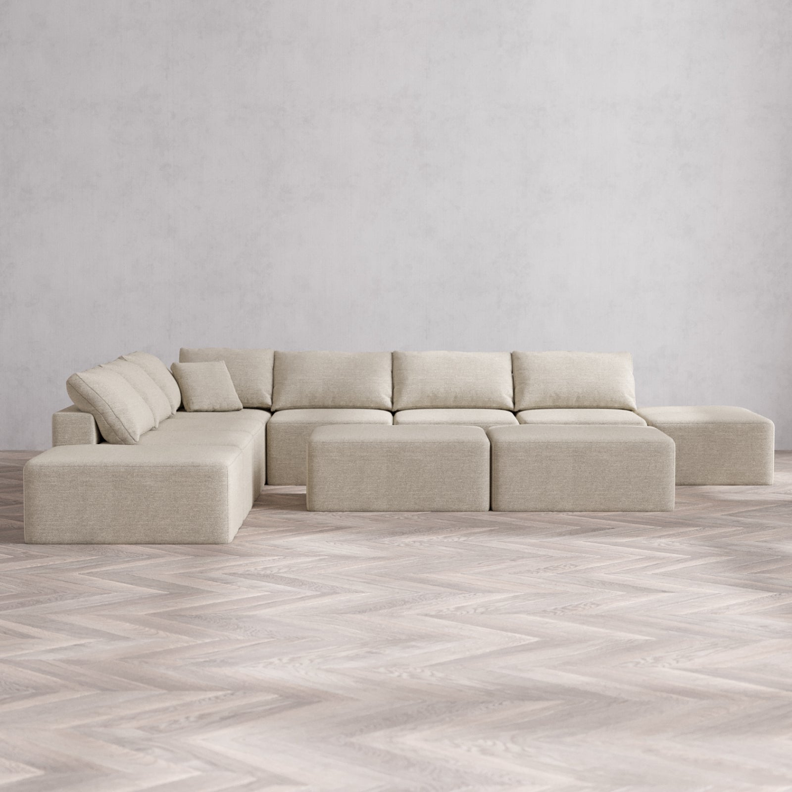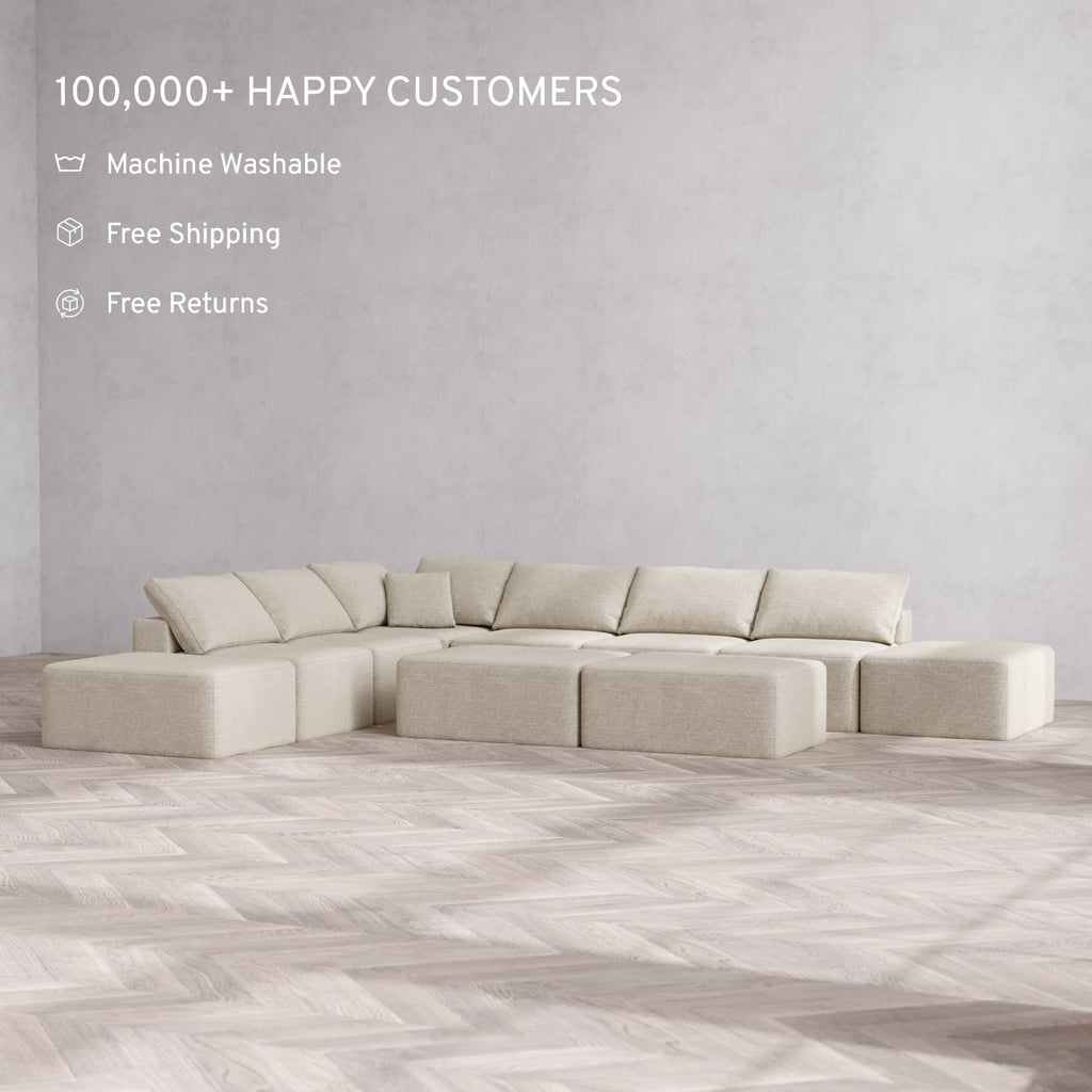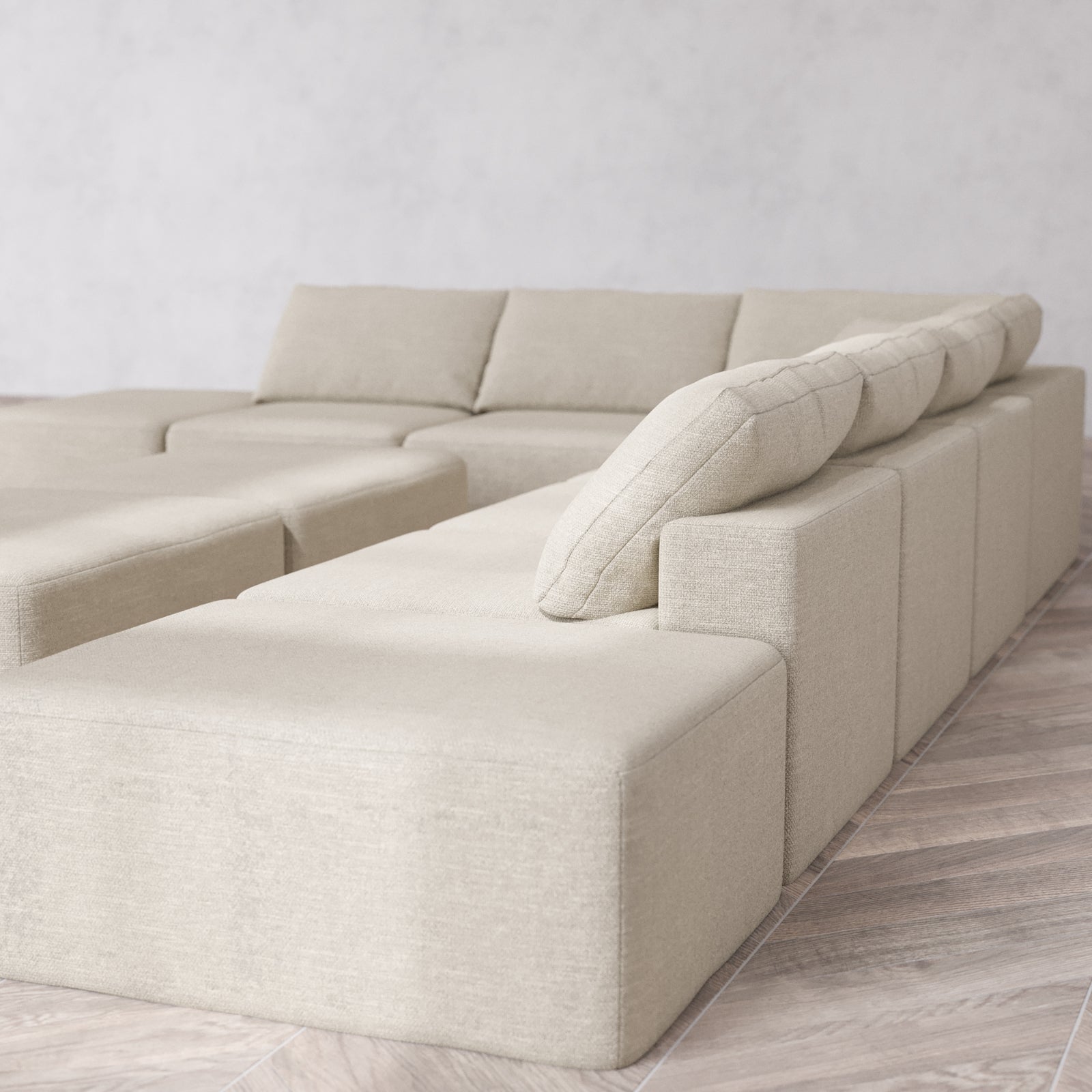 Modular Washable 8-Seater Open-Ends Corner Sectional + Chaise Ottoman Bench Cloud Sofa | Plush Twill in Sandstone