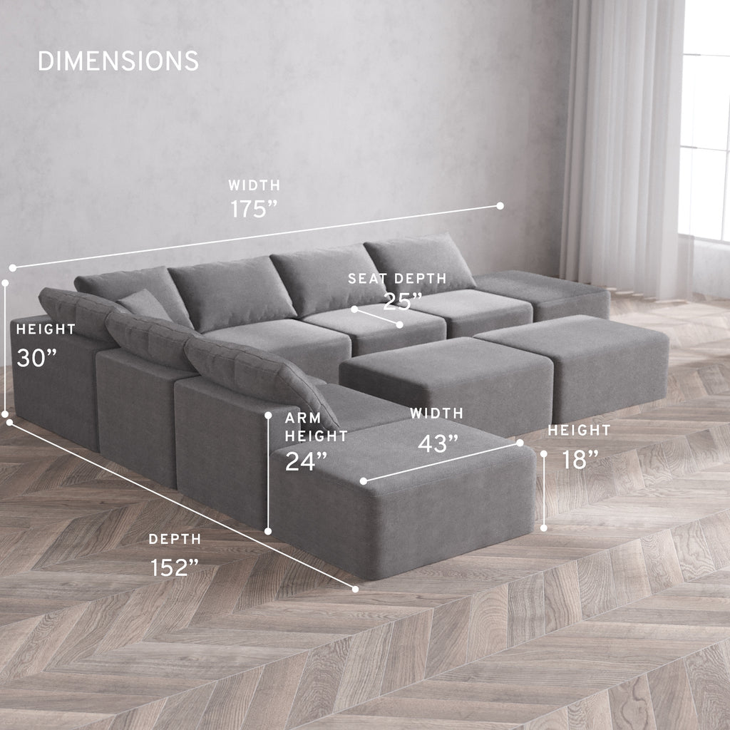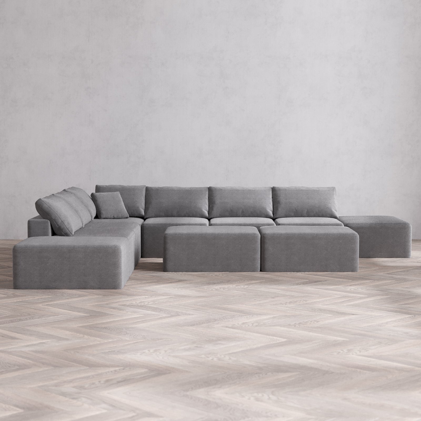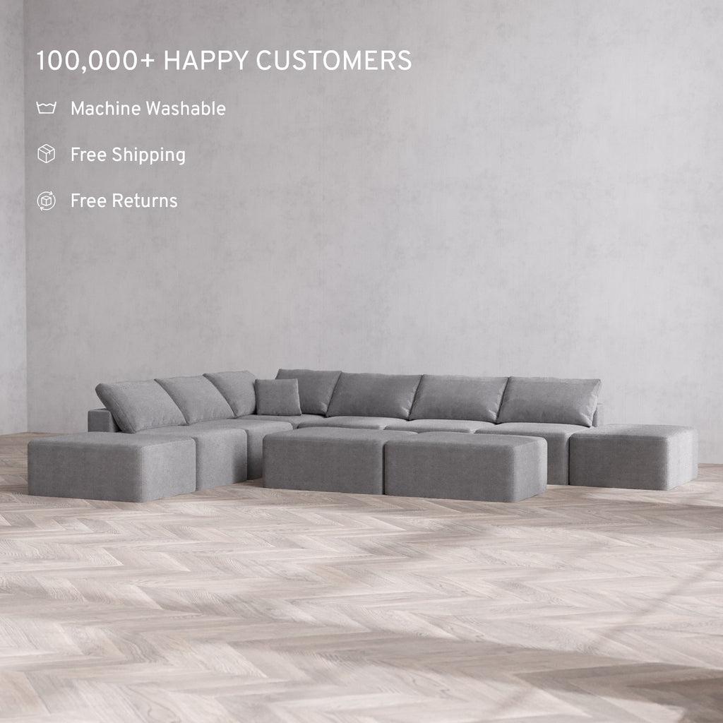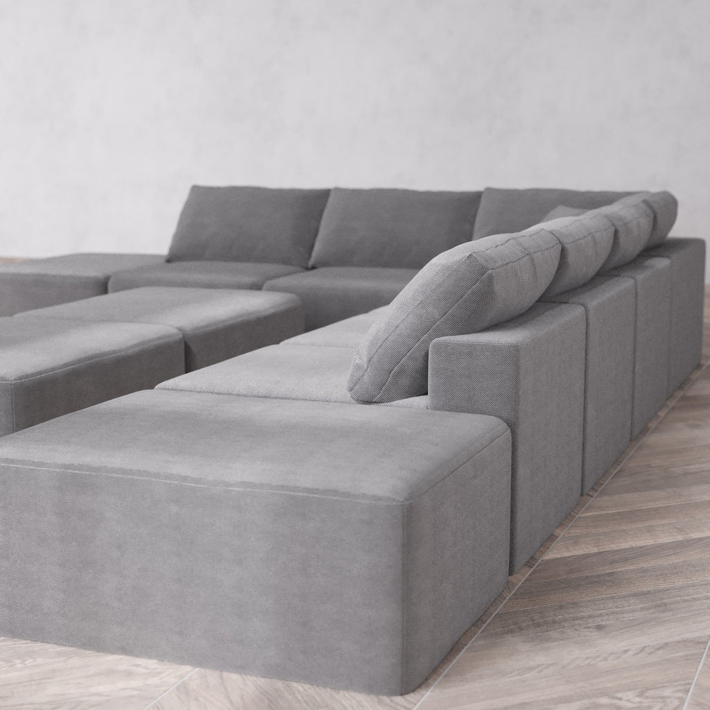 Modular Washable 8-Seater Open-Ends Corner Sectional + Chaise Ottoman Bench Cloud Sofa | Lux Weave in Slate