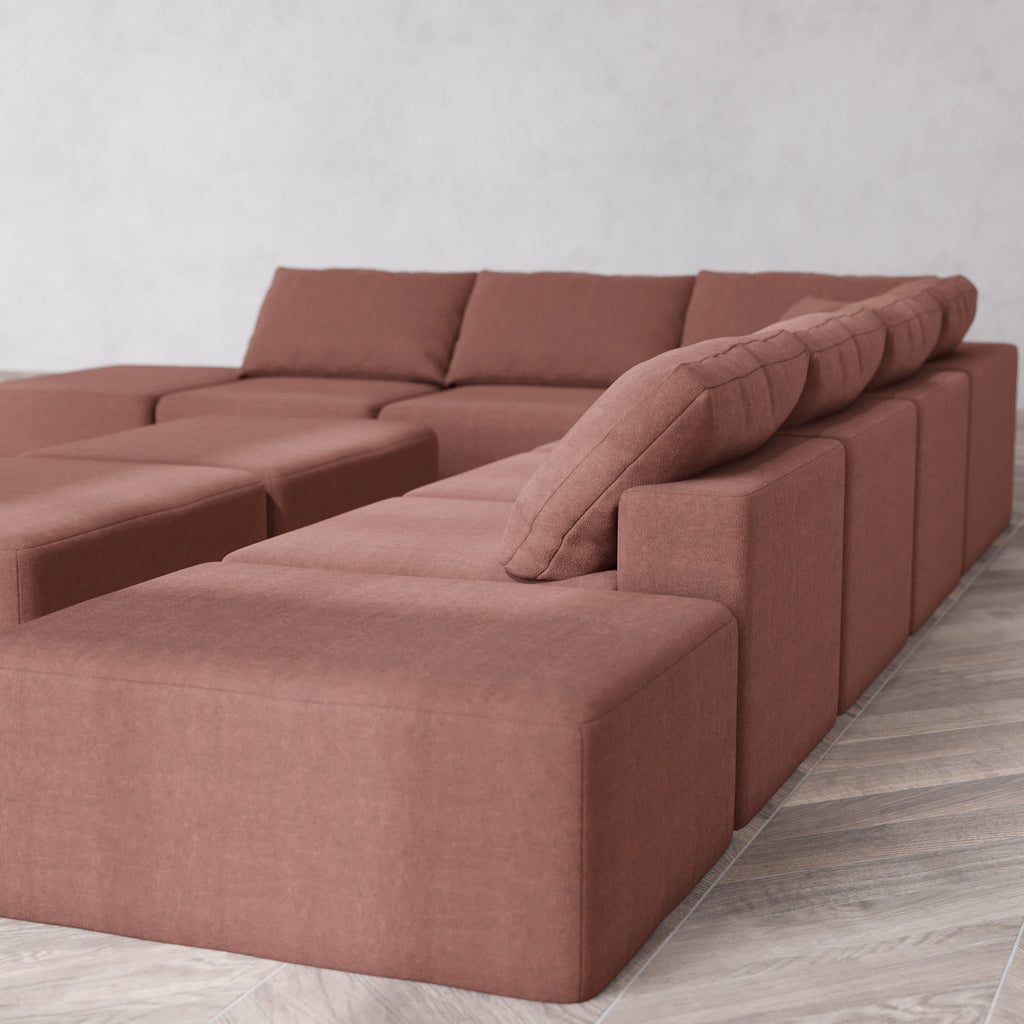 Modular Washable 8-Seater Open-Ends Corner Sectional + Chaise Ottoman Bench Cloud Sofa | Heirloom Velvet in Sumac