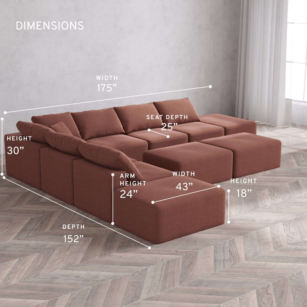 Machine Washable: Every piece of fabric—including the internal quilted duvet—is fully removable and machine washable. It’s the only Cloud-style sofa you can truly deep clean, effortlessly.
