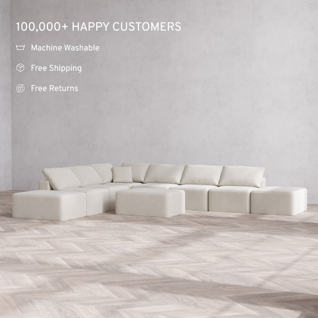 The Only Washable Cloud Sofa: With a waterproof frame and fabrics that resist pets, stains, and spills, this sofa is made to handle everyday messes. Our patent-pending covers are machine washable and fully interchangeable—buy extra sets to change up your look anytime.