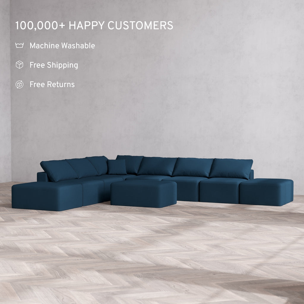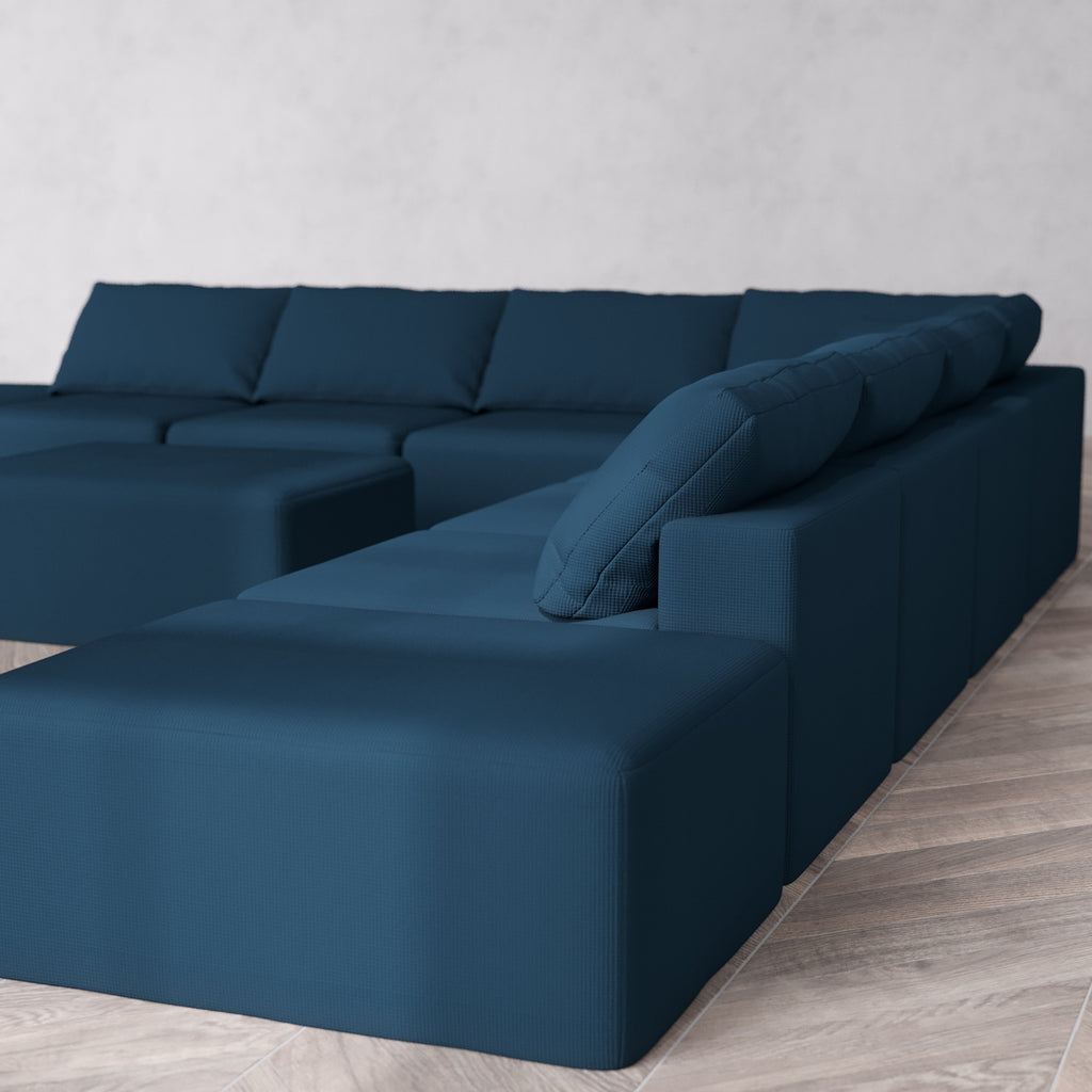 Modular Washable 8-Seater Open-Ends Corner Sectional + Chaise Ottoman Cloud Sofa | Arden Weave in Lazuli