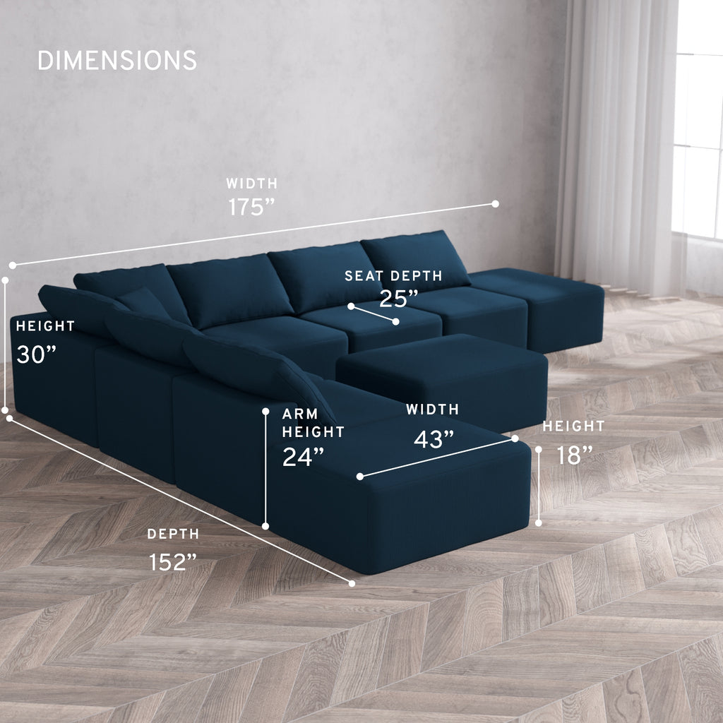 Machine Washable: Every piece of fabric—including the internal quilted duvet—is fully removable and machine washable. It’s the only Cloud-style sofa you can truly deep clean, effortlessly.