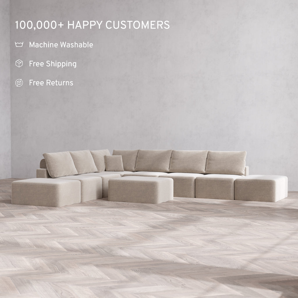 The Only Washable Cloud Sofa: With a waterproof frame and fabrics that resist pets, stains, and spills, this sofa is made to handle everyday messes. Our patent-pending covers are machine washable and fully interchangeable—buy extra sets to change up your look anytime.