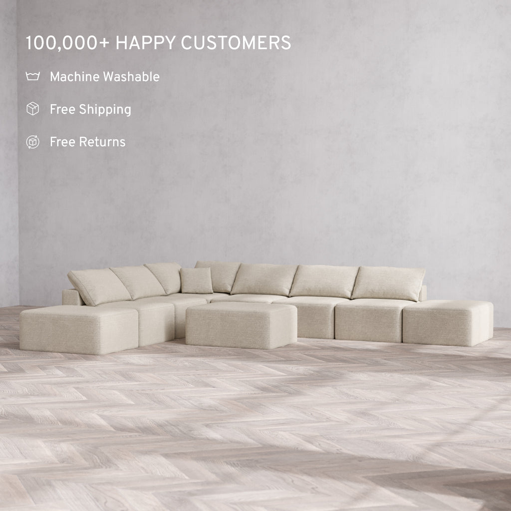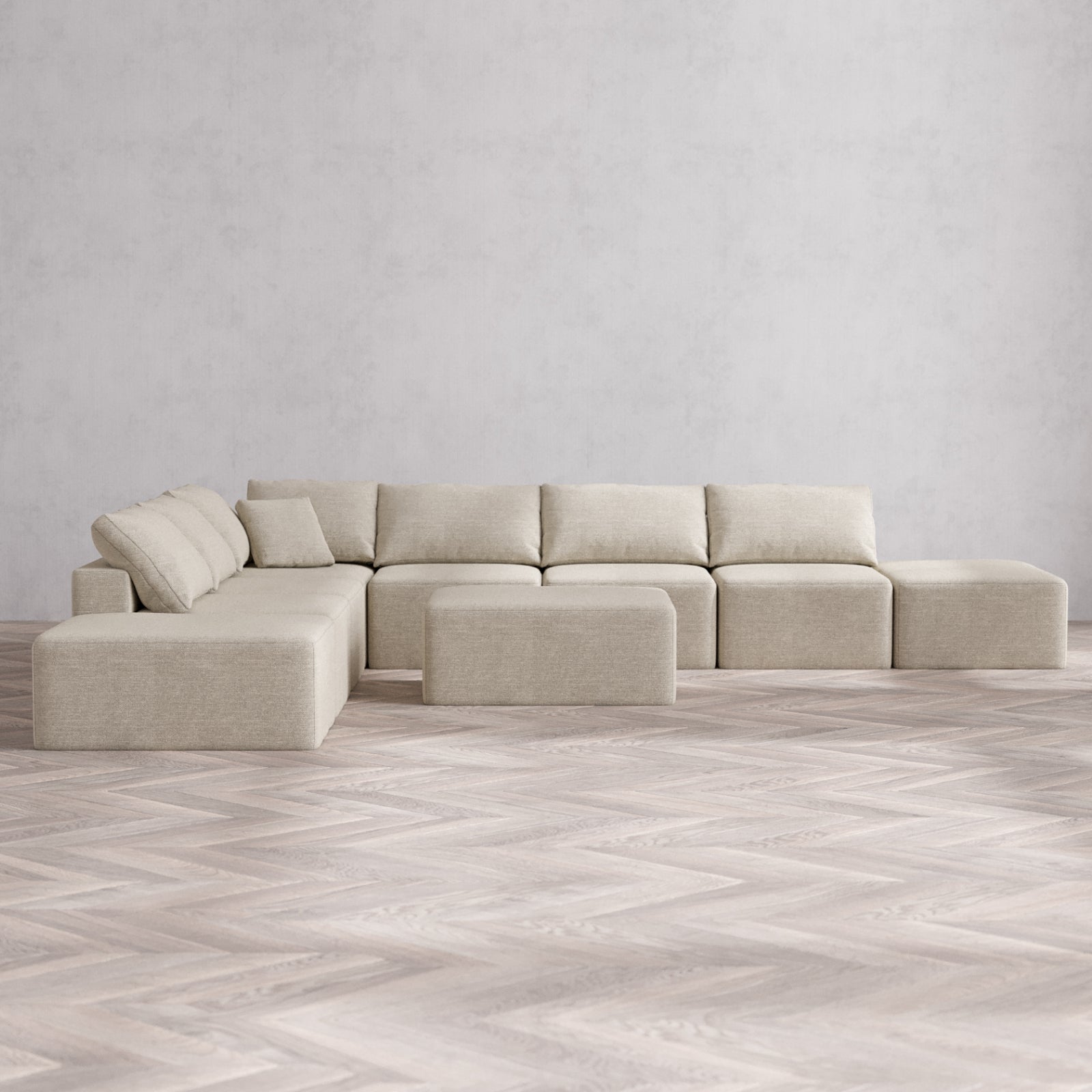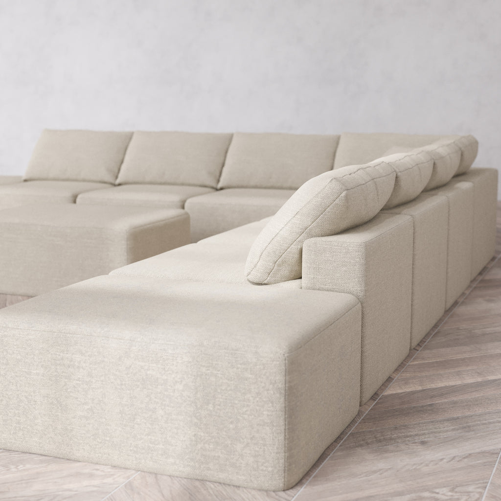 Modular Washable 8-Seater Open-Ends Corner Sectional + Chaise Ottoman Cloud Sofa | Plush Twill in Sandstone