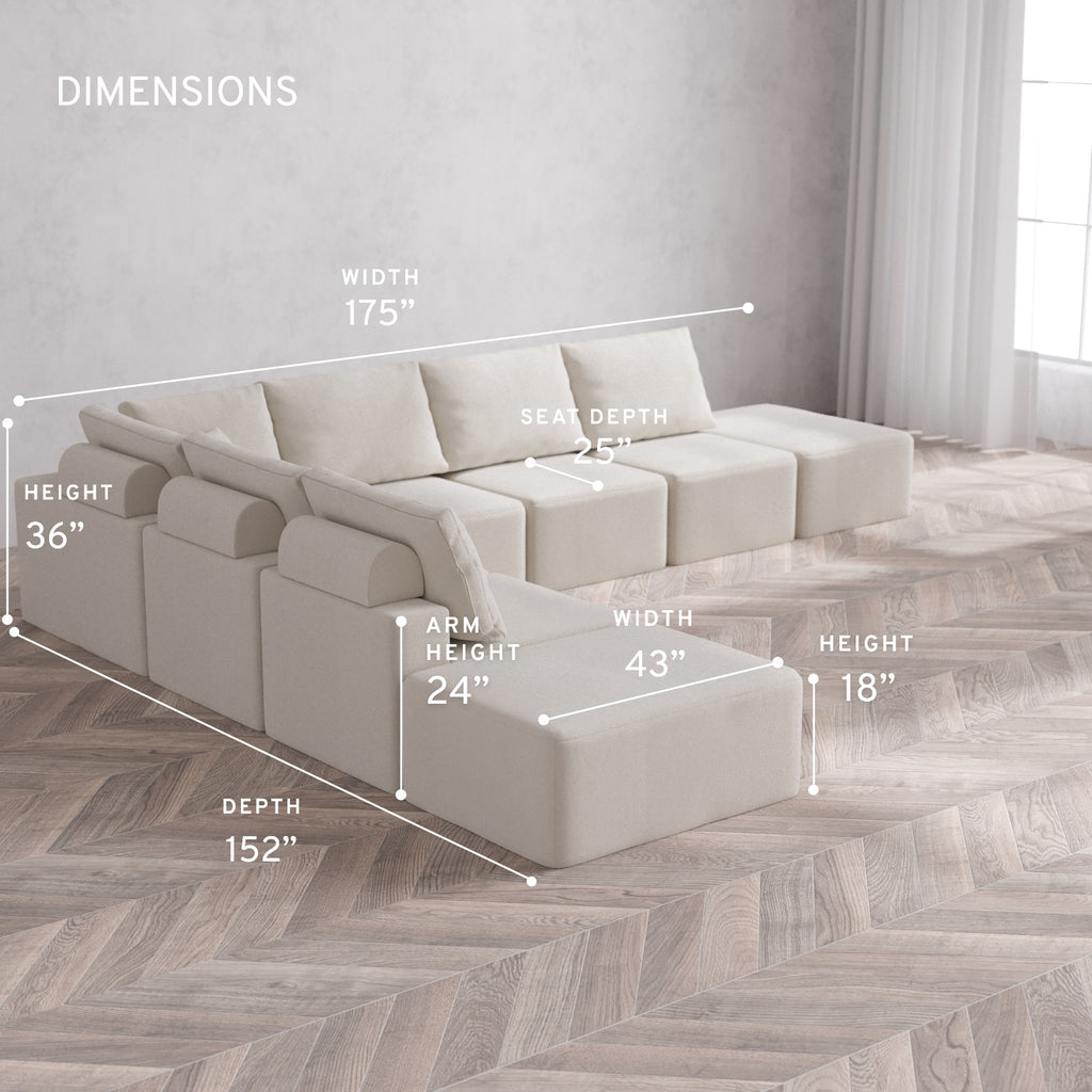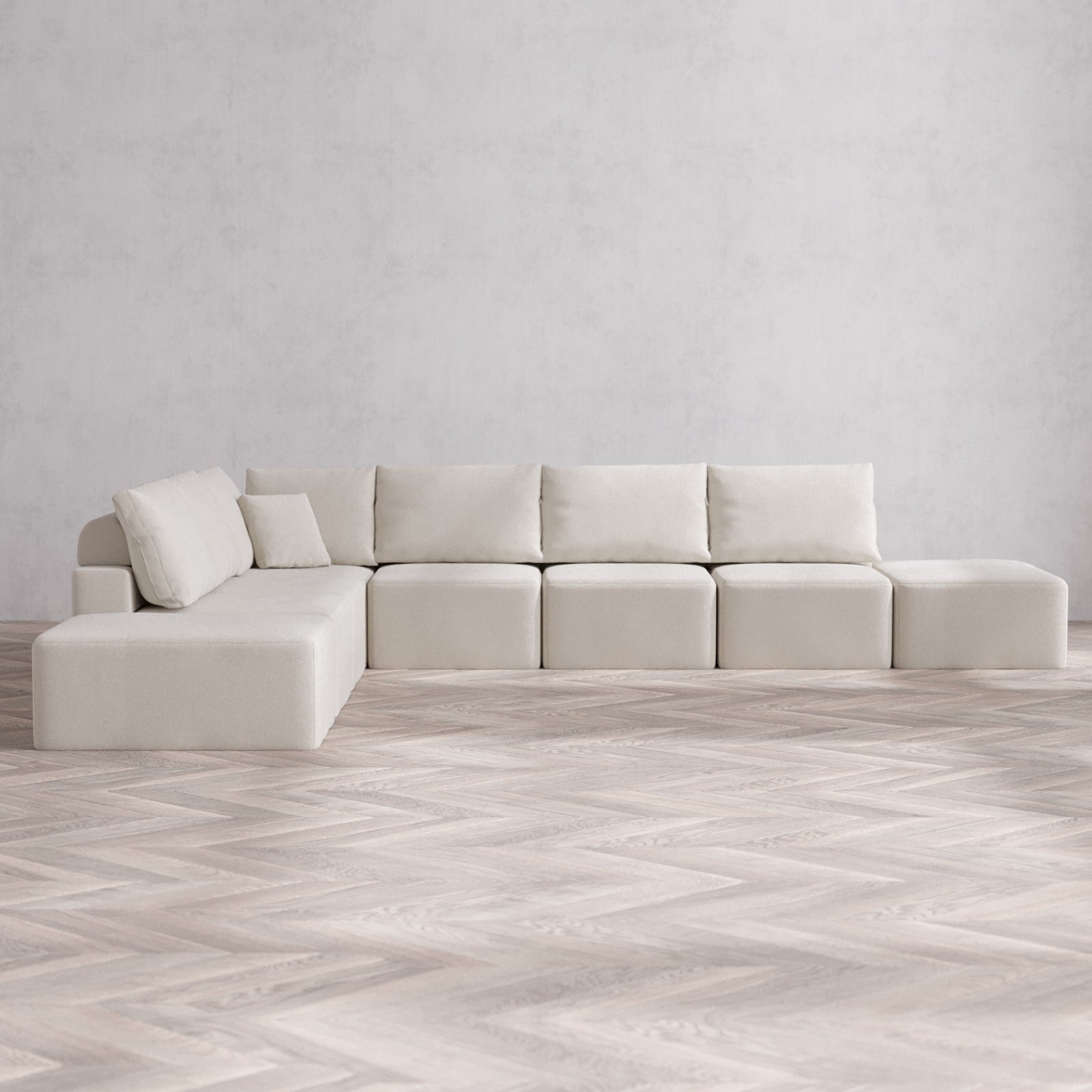 Modular Washable 8-Seater Open-Ends Corner Sectional Cloud + Bolster Sofa | Lux Weave in Pearl