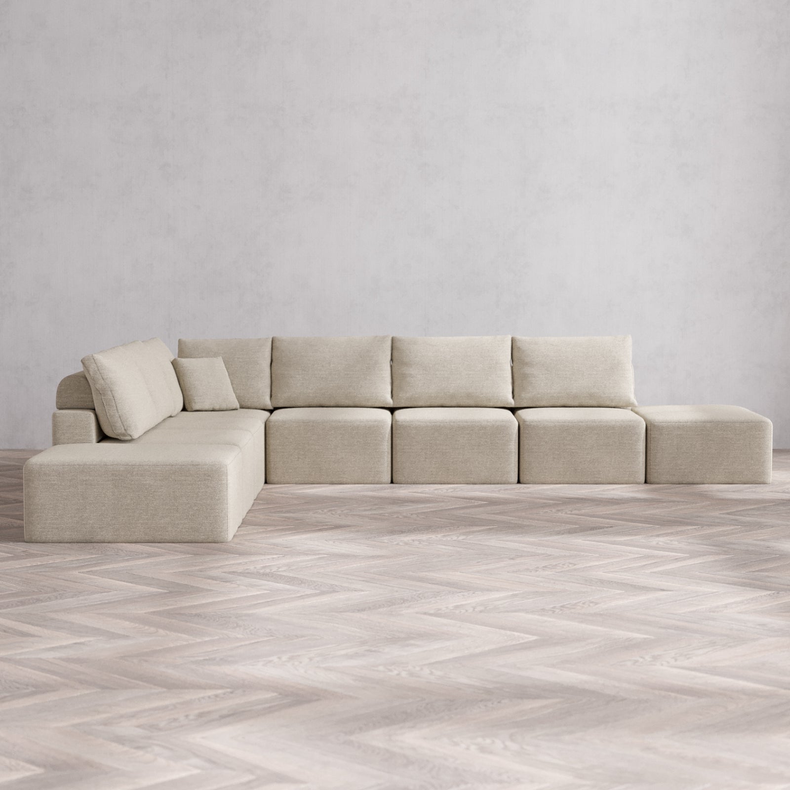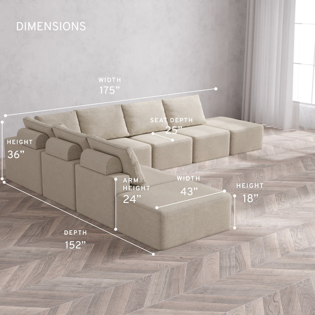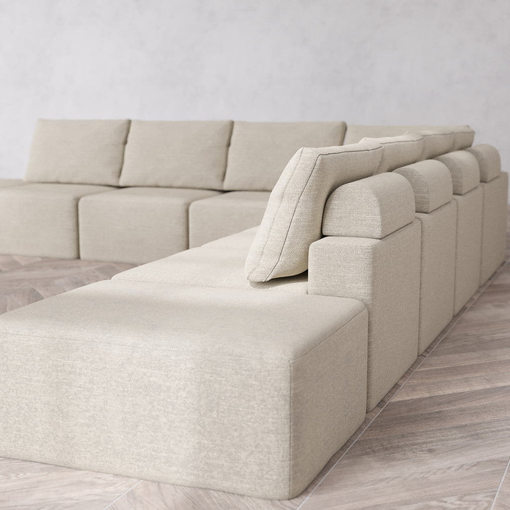 Modular Washable 8-Seater Open-Ends Corner Sectional Cloud + Bolster Sofa | Plush Twill in Sandstone