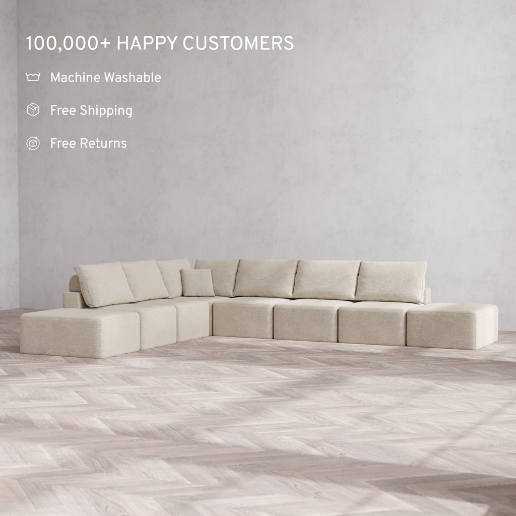 Machine Washable: Every piece of fabric—including the internal quilted duvet—is fully removable and machine washable. It’s the only Cloud-style sofa you can truly deep clean, effortlessly.