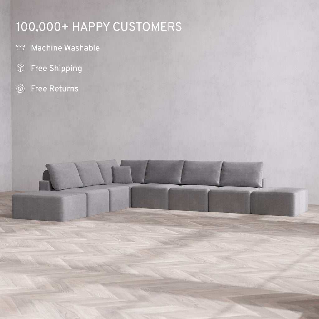The Only Washable Cloud Sofa: With a waterproof frame and fabrics that resist pets, stains, and spills, this sofa is made to handle everyday messes. Our patent-pending covers are machine washable and fully interchangeable—buy extra sets to change up your look anytime.